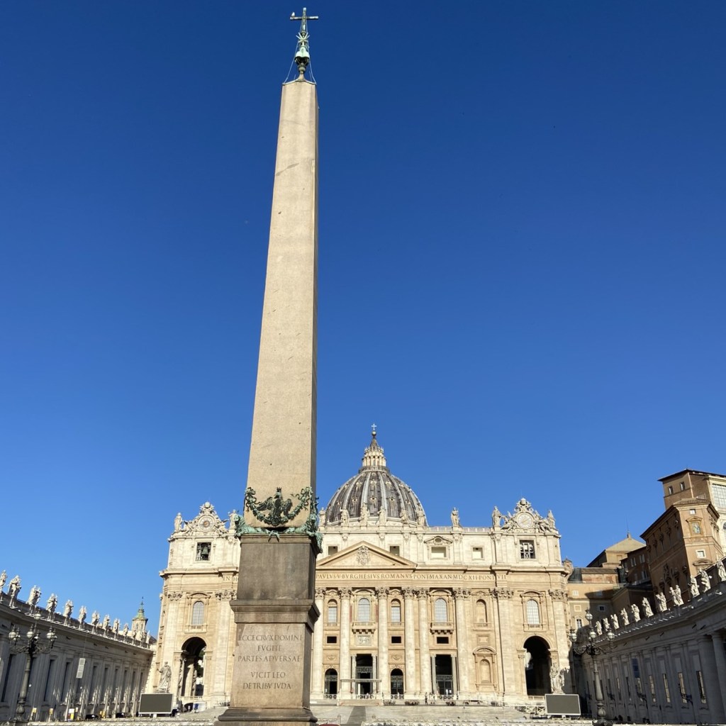 Em seguida explorei a Praça de São Pedro, um dos lugares mais simbólicos de Roma, onde os fiéis se reúnem para missas e eventos papais. A praça, projetada por Bernini, é um exemplo incrível de arquitetura barroca, com suas colunas imponentes que criam um efeito visual único, como se estivessem “abraçando” os visitantes. O Obelisco de São Pedro, no centro da praça, tem uma história que remonta ao Egito antigo.