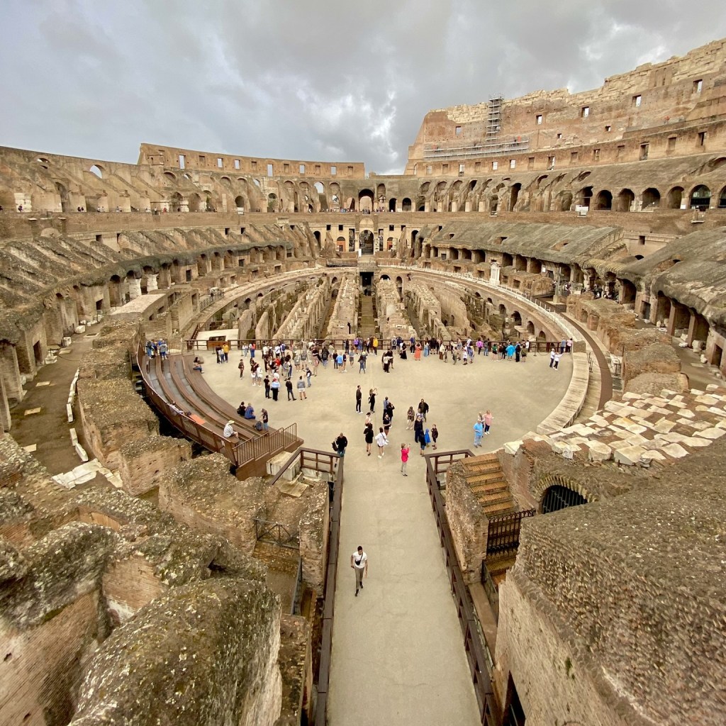 Comecei o segundo dia explorando uma das sete maravilhas do mundo moderno: o Coliseu, um anfiteatro construído sob os imperadores Vespasiano e Tito, que podia acomodar até 80.000 espectadores e era usado para exibir combates de gladiadores, batalhas navais, caçadas de animais e execuções públicas. Se chama Coliseu porque antigamente havia uma estátua gigante do imperador Nero do lado de fora (Colosso de Nero). Sua engenharia é impressionante, com um sistema de elevadores subterrâneos que traziam animais e combatentes à arena de forma dramática. Ao caminhar pelas ruínas, é possível perceber os vestígios de um tempo em que a brutalidade e o espetáculo eram a principal forma de entretenimento. Grande parte do Coliseu sofreu danos devido a terremotos e saques à estrutura, mas ele ainda permanece como um marco de engenharia e história, lembrando a opulência e a brutalidade do Império Romano. Para entrar no Coliseu, paguei € 18 no Site oficial (aproximadamente R$ 103,10 considerando o câmbio da época), e escolhi a opção de ticket que da acesso ao Coliseu, Palatino e Fórum Romano por 24h. Mas existem outras opções de bilhete para quem quer visitas guiadas ou outras experiências mais imersivas, com acesso à áreas restritas do Coliseu.