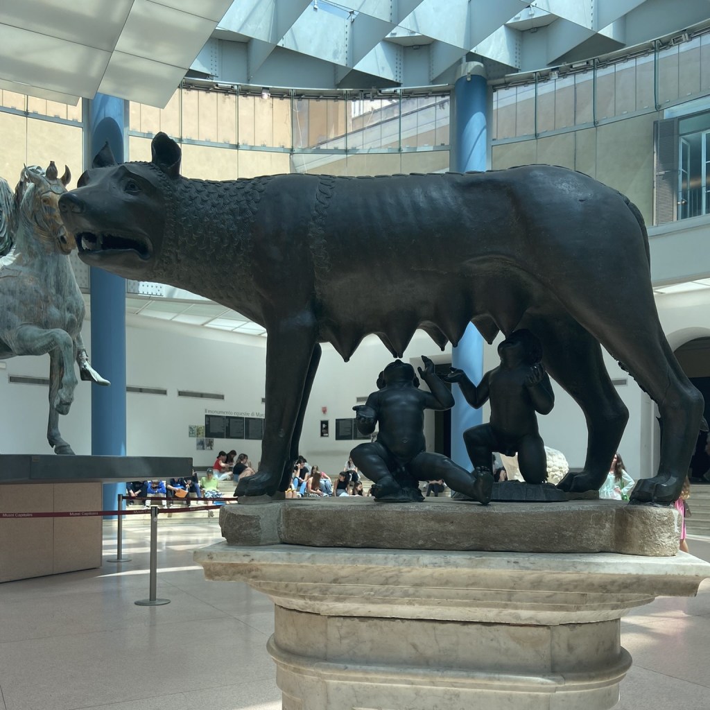 Ao lado do Monumento, fica a Santa Maria in Aracoeli, uma igreja localizada no alto de uma escadaria de 124 degraus, que possui um interior bonito e tranquilo. O destaque da igreja é o famoso Menino Jesus de Aracoeli. Ao lado, está a Piazza del Campidoglio, projetada por Michelangelo, que é cercada por edifícios históricos e oferece uma das vistas mais bonitas do Fórum Romano. Visitei o Museu Capitolino, que abriga uma coleção impressionante de arte e esculturas antigas, incluindo a famosa estátua de Lupa Capitolina, é uma estátua de bronze que representa a loba amamentando os gêmeos Rômulo e Remo, fundadores de Roma. Par entrar no Museu Capitolino, paguei € 18,50 no ingresso e comprei lá mesmo (aproximadamente R$105,16 considerando do câmbio da época).
