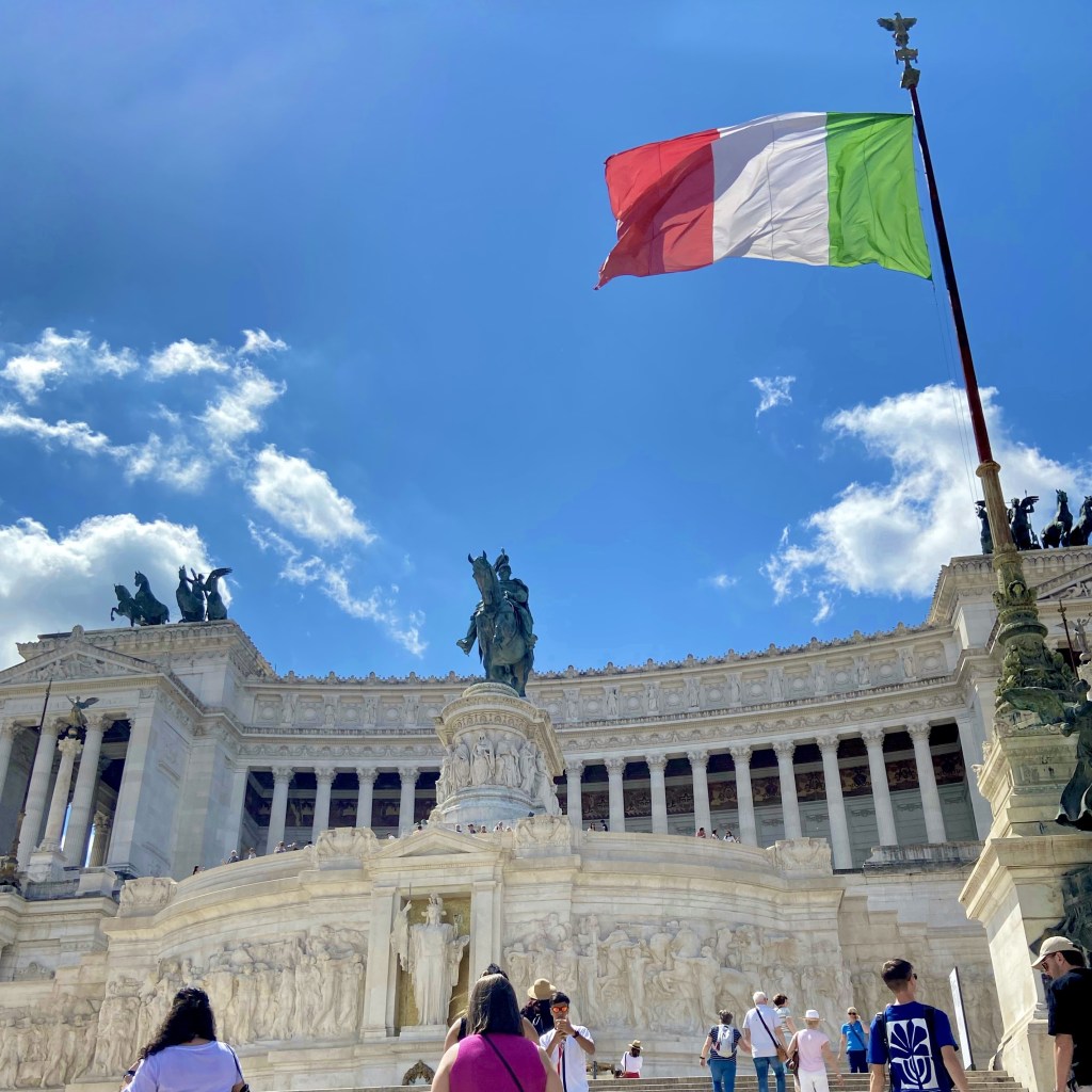 No quarto dia, comecei meu passeio explorando o Mercati di Traiano, um antigo mercado romano que funcionava como um centro comercial na Roma Antiga, hoje em ruínas. Bem próximo dali fica a Piazza Venezia, uma das praças mais movimentadas de Roma, famosa pelo imponente Monumento a Vittorio Emanuele II, também conhecido como “O Altar da Pátria”. Esse monumento homenageia o primeiro rei da Itália unificada e oferece uma vista incrível de Roma se você subir até o topo. Tem um museu dentro do monumento (entrada paga, mas não visitei), porém há muitas obras expostas do lado externo de forma gratuita, como A Estátua Equestre de Vittorio Emanuele II e o altar com um grande fogo eterno dedicado aos soldados desconhecidos da Primeira Guerra Mundial.