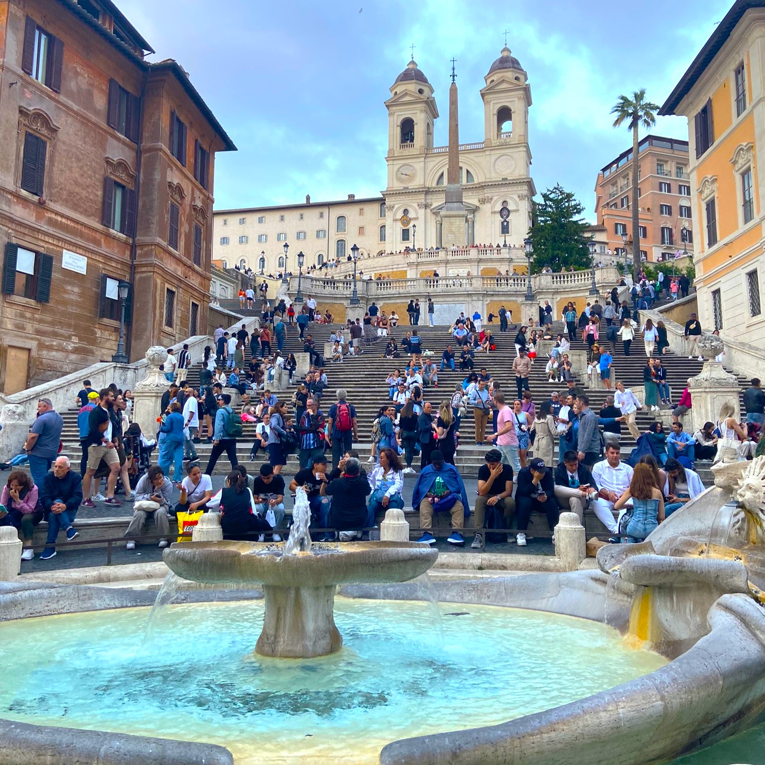 Depois do Pantheon, fiz uma parada para almoçar e parti para o próximo destino: a Galeria Doria Pamphilj: uma galeria de arte particular belíssima que fica em uma mansão no centro histórico de Roma e abriga obras magníficas de grandes artistas como Rafael, Tiziano, Caravaggio, Bruegel o Velho, e Velázquez ou Bernini. A entrada com áudio guia custou € 29 no Get Your Guide (aproximadamente R$ 166,10 considerando o cambio da época). Saindo da galeria, fui em direção à Fontana de Trevi, que é uma das fontes mais famosas de Roma, projetada por Niccolò Salvi no estilo barroco, ela apresenta uma grandiosa escultura central de Netuno, rodeado por figuras mitológicas. A fonte é famosa por sua tradição de jogar moedas: Diz a lenda que a pessoa deve jogar a moeda com a mão direita sobre o ombro esquerdo. Se a pessoa jogar 1 moeda, ela retorna à Roma; se jogar 2 moedas, a pessoa encontra um grande amor; e se jogar 3 moedas, a pessoa se casa com a pessoa amada. Além de ser um ponto turístico icônico, a Fontana arrecada cerca de 1,5 milhões de euros com as moedas lançadas, que são destinadas a ações de caridade.