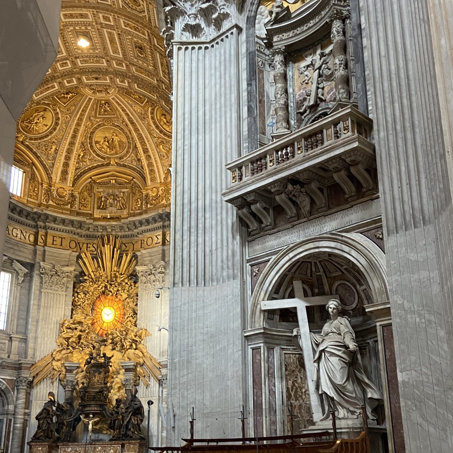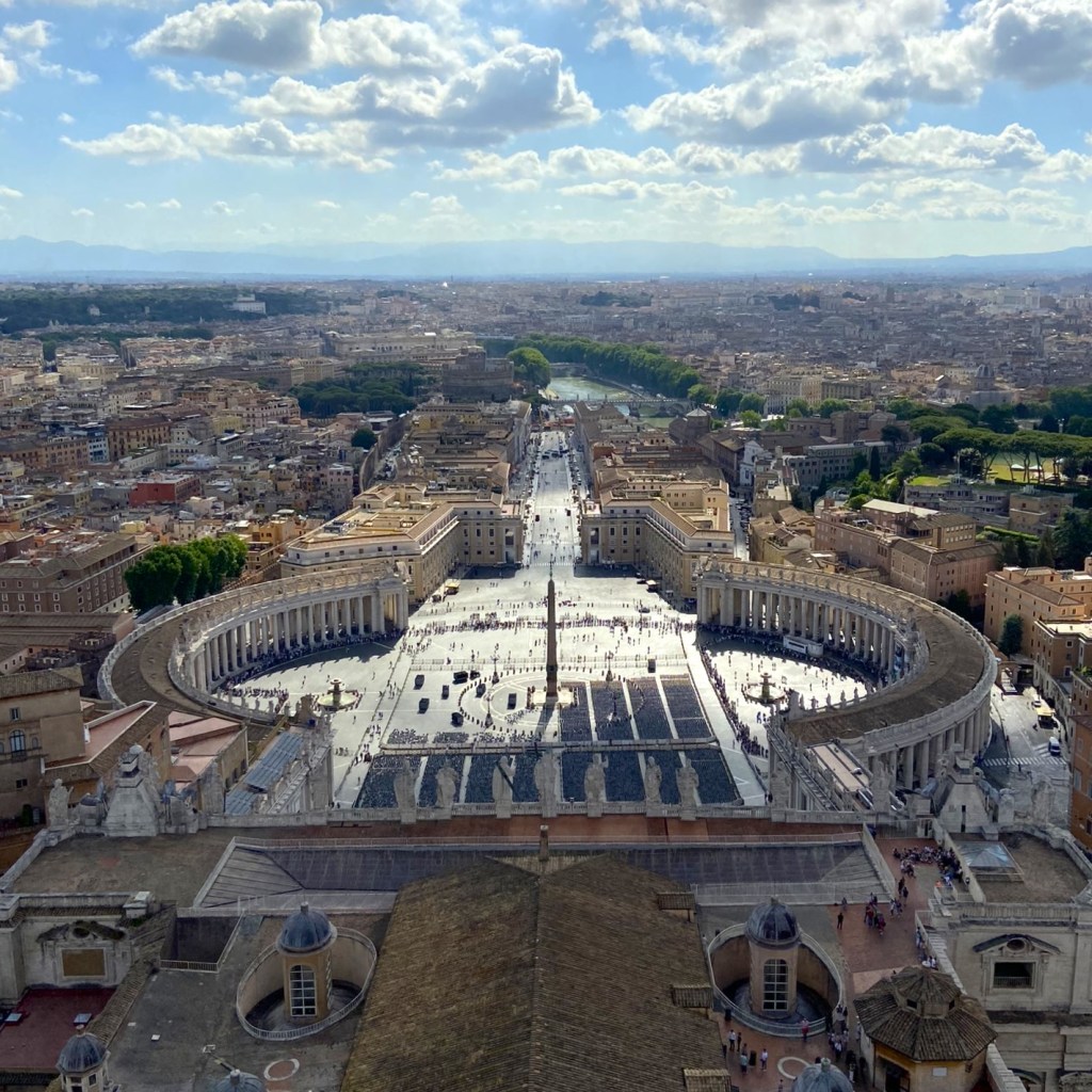 O terceiro dia começou com uma visita à outro país, que fica à 20 minutos a pé do hotel onde eu estava hospedada: O Vaticano – o menor país do mundo e centro espiritual do catolicismo. Fica dentro de Roma, mas é um Estado independente, com seu próprio governo, leis, território e população. Sua população é de cerca de 800 a 850 habitantes. A maior parte dessa população é composta por clérigos, como cardeais, bispos, sacerdotes e membros de ordens religiosas, além de funcionários do Vaticano, e também, o Papa. A visita à Basílica de São Pedro é imperdível, com sua grandiosidade e arquitetura deslumbrante. Na basílica é possível admirar e subir a famosa Cúpula de São Pedro, projetada por Michelangelo, de onde você pode ter uma das vistas mais impressionantes de Roma, ou então ver a Pietà, uma obra-prima de Michelangelo que representa a Virgem Maria com o corpo de Cristo. Entre muitas outras obras e esculturas dentro da basílica.