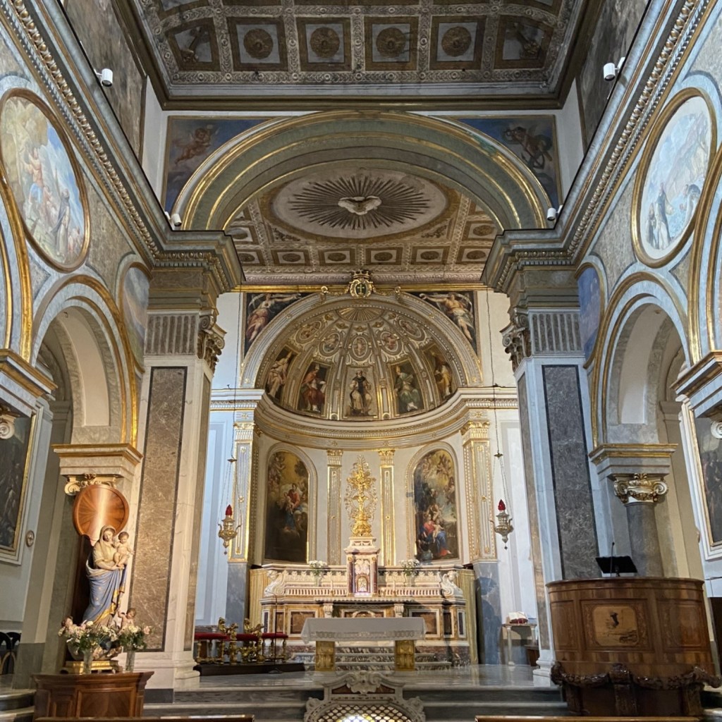 Dali, segui para a Basílica Sant’Antonino, uma igreja cheia de história e dedicada ao padroeiro de Sorrento. É simples por fora, mas cheia de detalhes interessantes por dentro. Depois explorei as várias ruas e lojinhas da cidade, chegando até a charmosa Chiesa di San Francesco, com seu claustro cercado por arcos e plantas. Um lugar tranquilo e super fotogênico.