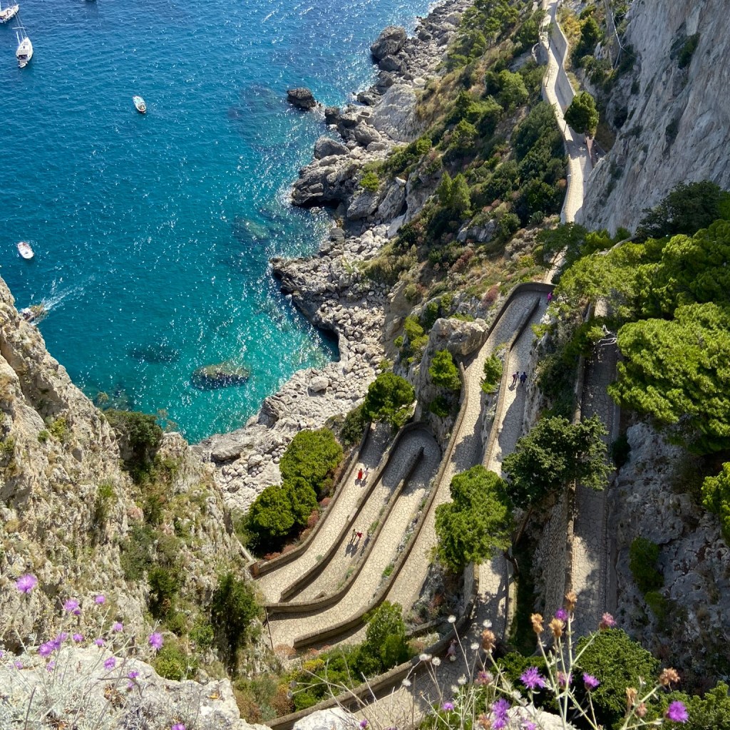 Para fechar com chave de ouro, visitei os Jardins de Augusto, que oferece uma das melhores vistas da ilha, incluindo uma vista incrível dos famosos Faraglioni e da Via Krupp, uma estrada sinuosa que leva até a Marina Piccola. A Via Krupp, por sua vez, foi projetada por Krupp e é uma das estradas mais fotogênicas do mundo, com curvas que contornam as falésias da ilha.