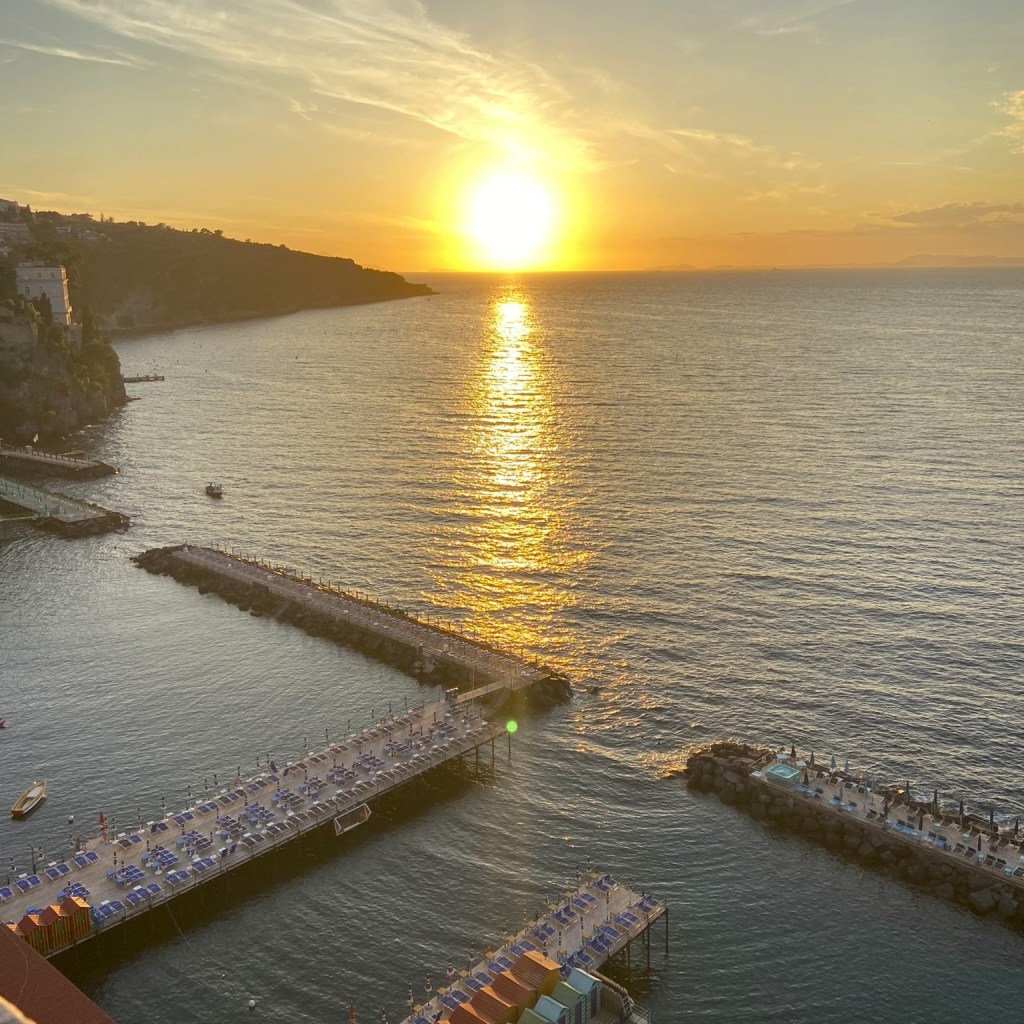 Pôr do Sol visto da Villa Comunale e Porto de Sorrento