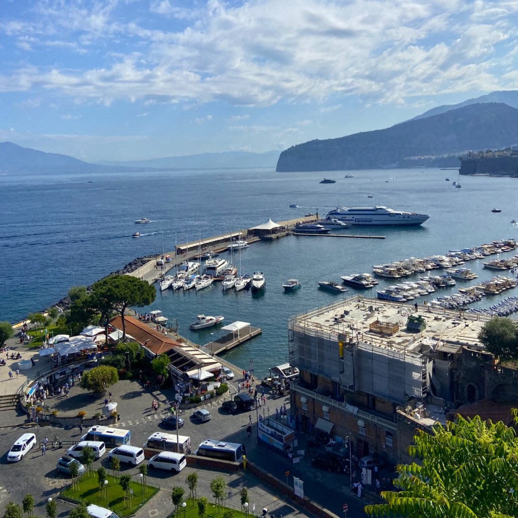 Depois, fui até a Villa Comunale di Sorrento, um jardim público que oferece uma das vistas mais lindas do Golfo de Nápoles. É impossível não ficar impressionado com o azul intenso do mar e o Vesúvio no horizonte. Dali eu desci até a Spiaggia Publica di Sorrento para ver o mar mais de perto, uma pequena praia ideal para relaxar ou até dar um mergulho rápido.