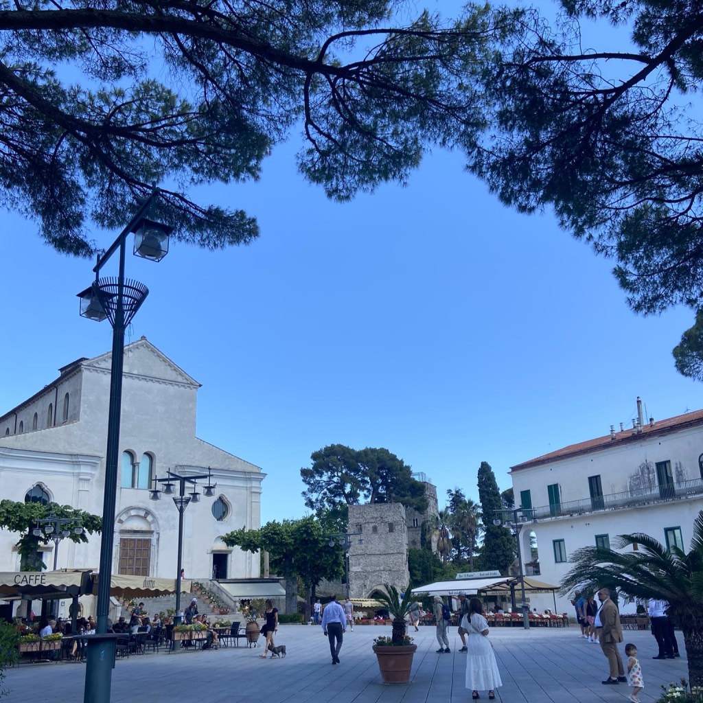 Depois de Amalfi, subimos até Ravello, um refúgio de tranquilidade e beleza. Fundada no século V, Ravello sempre foi associada à arte e à música, atraindo figuras como Wagner, que teria se inspirado na Villa Rufolo para criar uma de suas óperas. A Villa Rufolo possui jardins coloridos e vistas deslumbrantes do mar. Também é possível visitar a Villa Cimbrone, famosa pelo “Terraço do Infinito”, onde as estátuas parecem flutuar sobre o azul do Mediterrâneo. Uma curiosidade é que Ravello também é chamada de “cidade da música”, com seu festival anual que atrai artistas do mundo inteiro.
