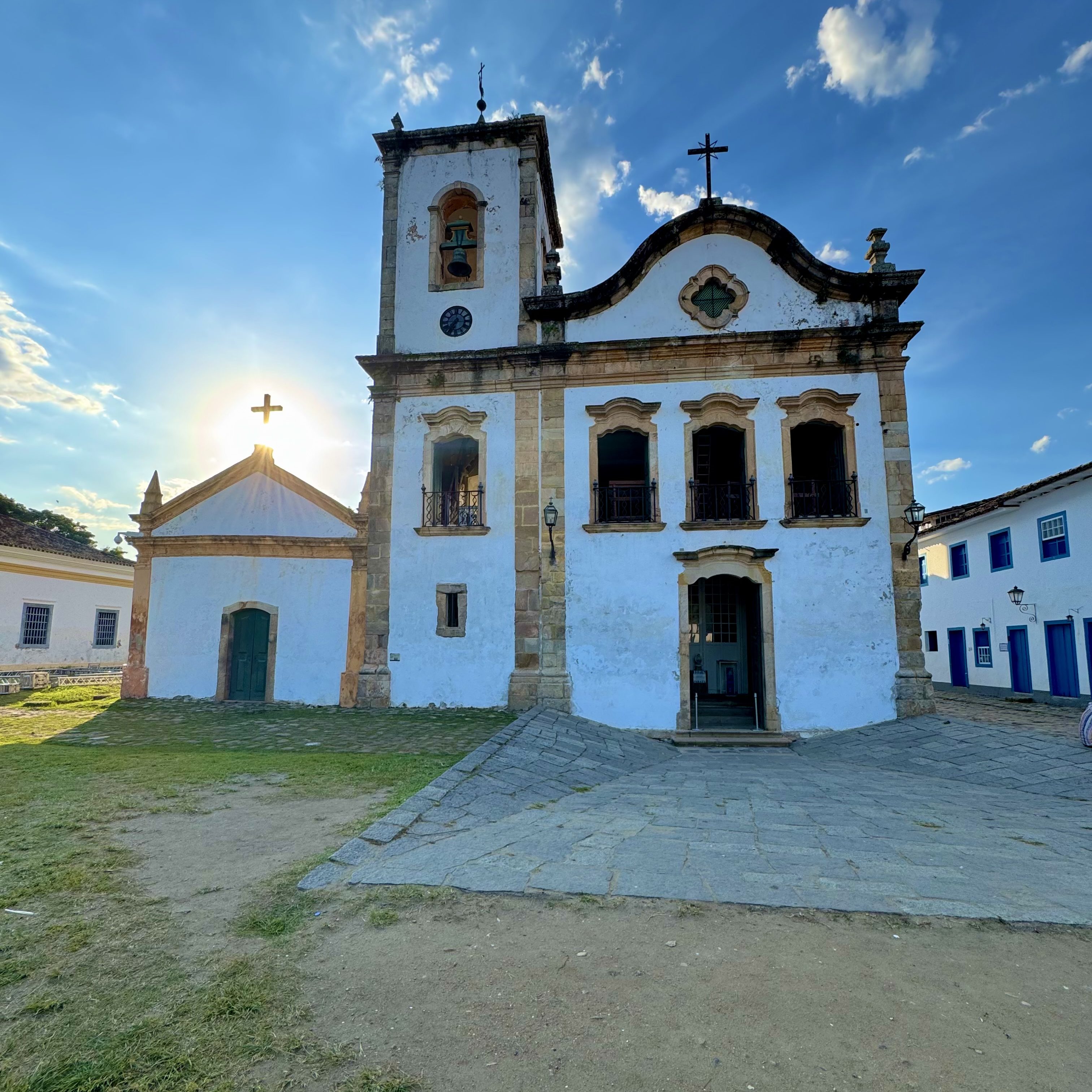 Além das belezas naturais, Paraty também é rica em patrimônio religioso. Depois de descansar na praia, fui caminhando até a Igreja Nossa Senhora das Dores, com sua arquitetura simples e charmosa, e depois até a Igreja Nossa Senhora do Rosário e São Benedito, de fachada imponente, são duas paradas imperdíveis para quem se interessa pela história religiosa da cidade. Para quem aprecia arte, a Casa de Cultura de Paraty oferece exposições que mostram o talento local e curiosidades sobre a história da cidade, enquanto o SESC Paraty é um espaço cultural que abriga diversas atividades durante o ano.