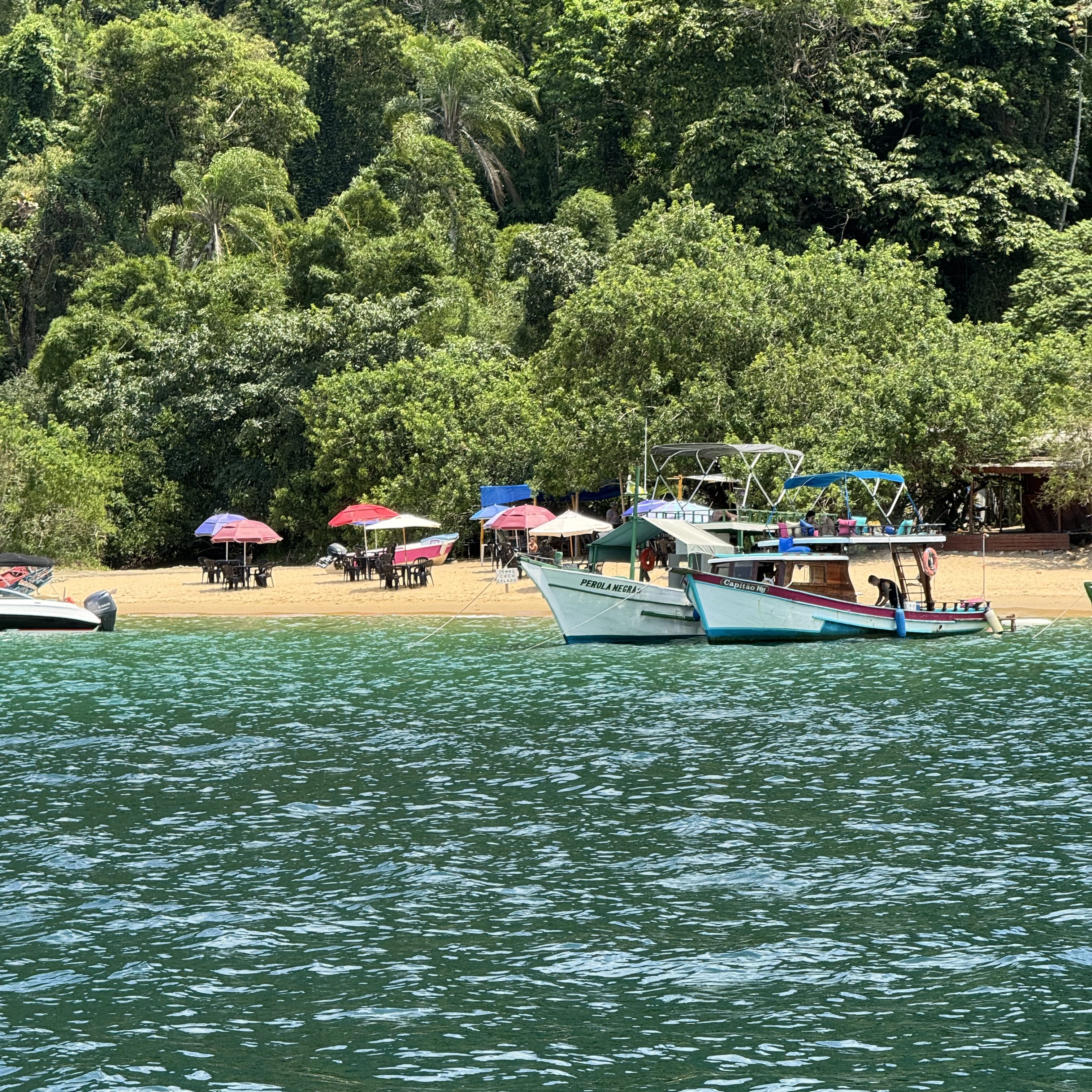 A última parada do dia é na Praia da Lula, um verdadeiro paraíso escondido. A praia é acessível apenas por barco, o que garante um ambiente exclusivo e preservado. Com águas transparentes e uma paisagem deslumbrante, é o lugar perfeito para relaxar, fazer snorkeling ou simplesmente se encantar com o cenário.