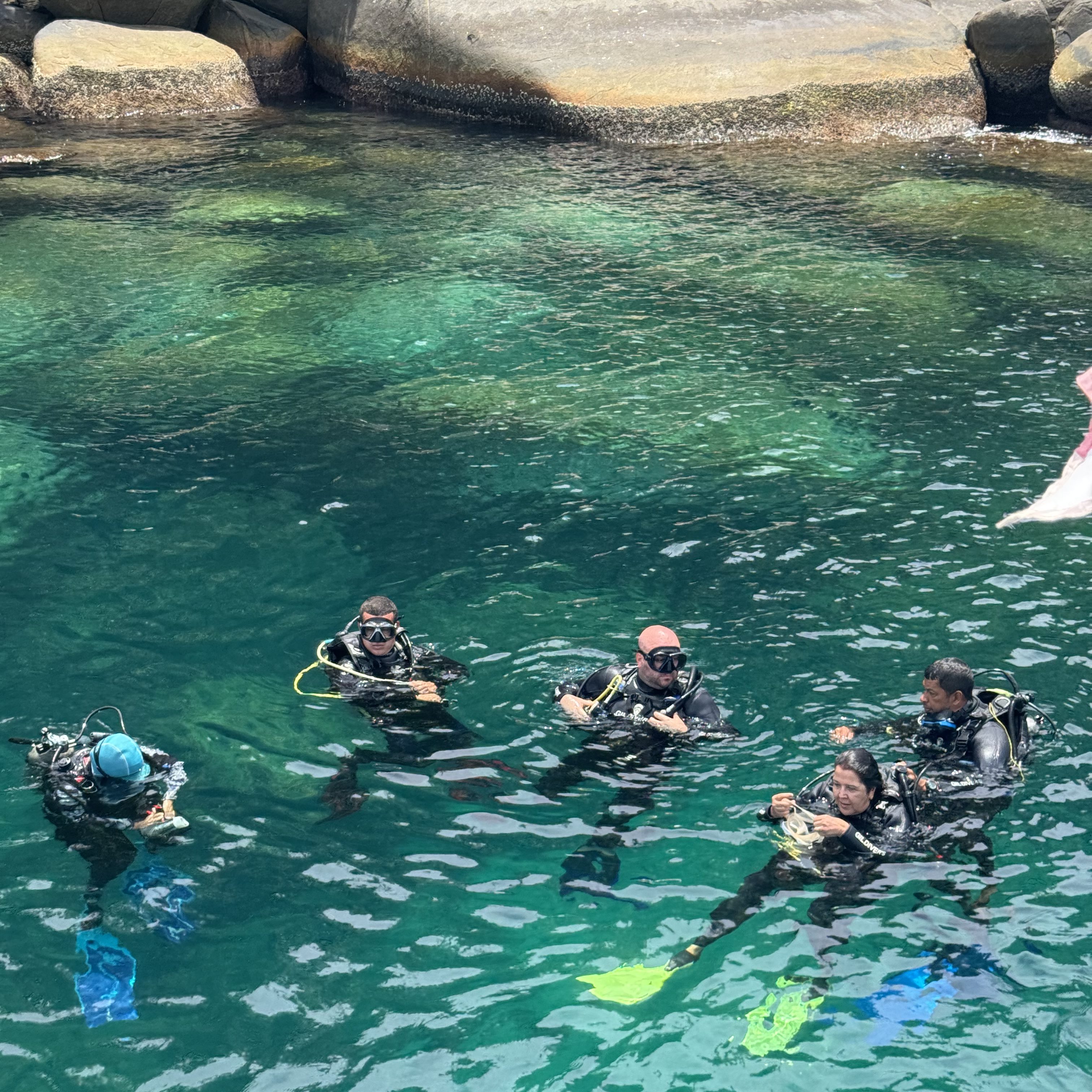 Os locais de mergulho são cuidadosamente selecionados, e nesse dia mergulhamos na Ilha dos Meros, que possui águas cristalinas e grande diversidade de vida marinha, como peixes coloridos, tartarugas e corais. Durante o mergulho, é possível observar de perto esse ecossistema marinho, aproveitando a experiência de estar em um dos destinos mais ricos do Brasil para o mergulho.