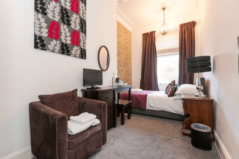 Eu fiquei hospedada na Fraoch House, que é um hotel que fica em uma casa vitoriana super bonita, numa rua tranquila, mas pertinho da movimentada Leith Walk. Ela fica mais afastada do centro, uma distância de 2 km (o que dá uns 25 minutos a pé e uns 10 minutos de ônibus). Os quartos são decorados de um jeito único, misturando estilo clássico com conforto moderno. O dono é super atencioso e o café da manhã escocês servido lá é daqueles que fazem o dia começar bem. Além disso, a localização é perfeita para explorar a cidade, com um ponto de ônibus na frente, o que torna o transporte muito fácil para o centro. Perfeito para quem busca um cantinho tranquilo, com um preço mais acessível e longe da movimentação do centro para descansar depois de bater perna por Edimburgo.