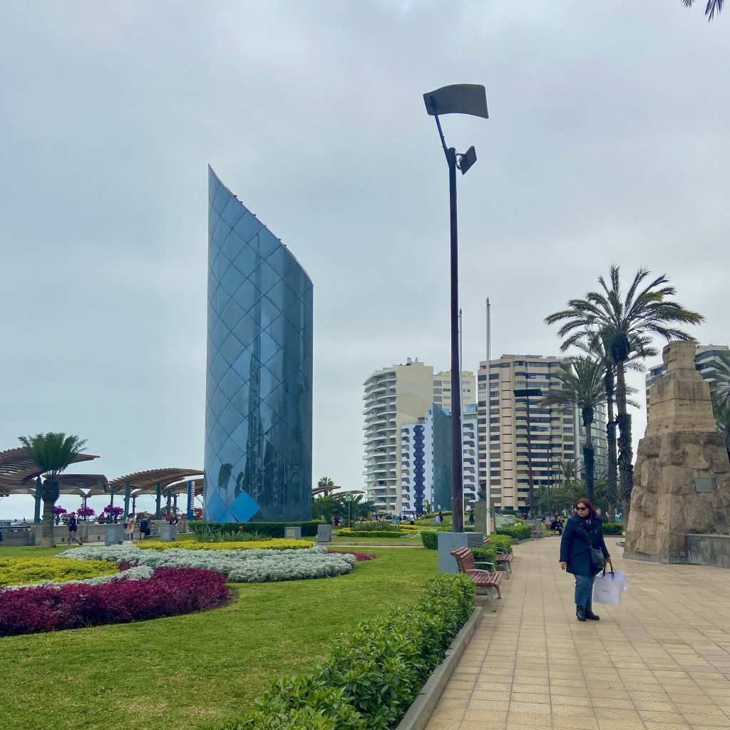 Cheguei a Lima no meio da tarde, com aquela sensação gostosa de estar em um lugar novo, pronto para ser descoberto. Seguindo o roteiro da agência, eu tinha a tarde livre, então decidi começar minha exploração pelo bairro do hotel onde eu estava hospedada: Miraflores, um dos mais famosos da cidade. Lima estava bem nublada, mas logo na chegada, o clima já me conquistou: ruas bem cuidadas, muitas lojas e cafés charmosos por todo lado, e aquela vibe de cidade grande com um toque acolhedor. Passei a tarde caminhando pelo Parque Kennedy, onde os gatos perambulam entre os bancos e as pessoas aproveitam o ambiente tranquilo. Em seguida, fui até a Costa Verde, onde a vista do mar é incrível! Aproveitei para caminhar pela Paseo de la República, que tem uma vista espetacular do oceano, e tirei algumas fotos no Malecón de Miraflores, com seus jardins e vista panorâmica. O pôr do sol nesse lugar é um espetáculo à parte, perfeito para quem ama uma boa paisagem.