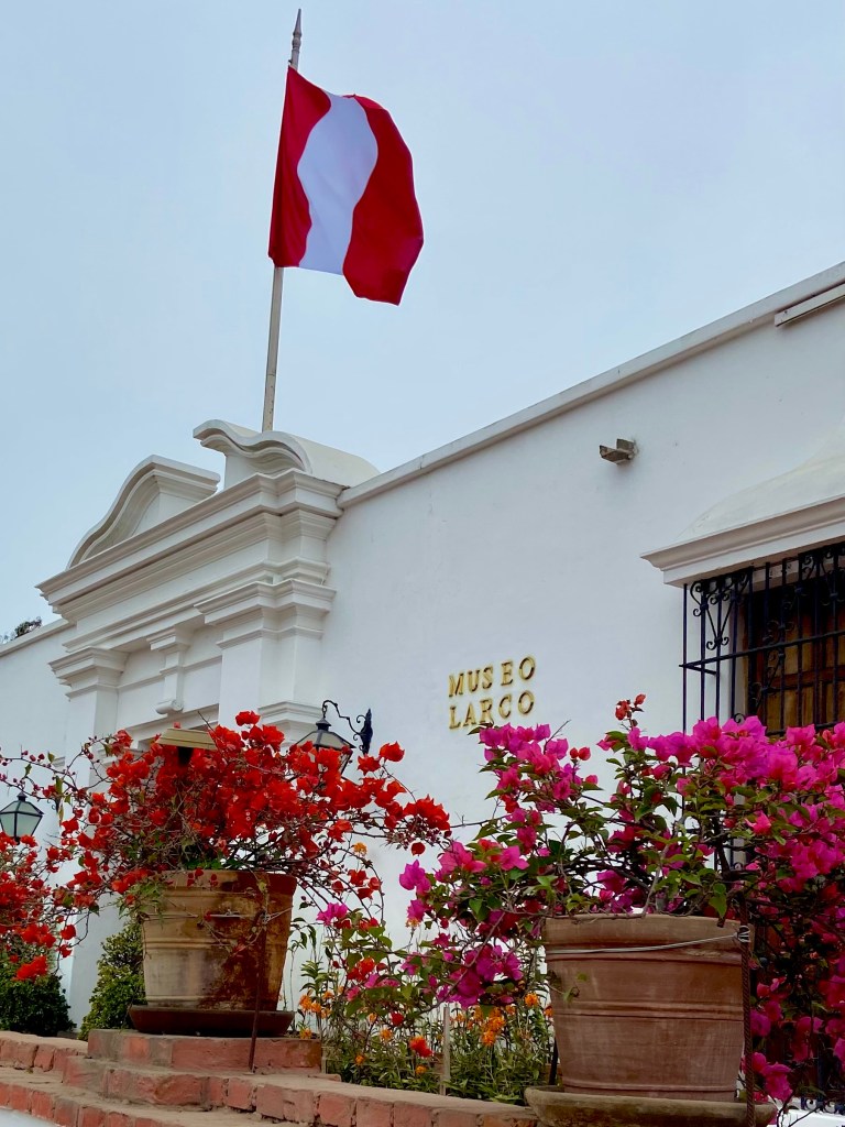 O próximo ponto foi o Museu Larco, um dos mais fascinantes de Lima. Instalado em uma antiga casa virreinal, o museu abriga uma impressionante coleção de arte pré-colombiana, com mais de 45.000 peças que revelam a riqueza das civilizações antigas do Peru. É realmente fascinante e bonito. Tem uma exposição especial em um hall separado que fala sobre a representação do erótico — uma seção que mostra cerâmicas antigas com imagens de rituais e simbolismos sexuais, algo surpreendente e intrigante.