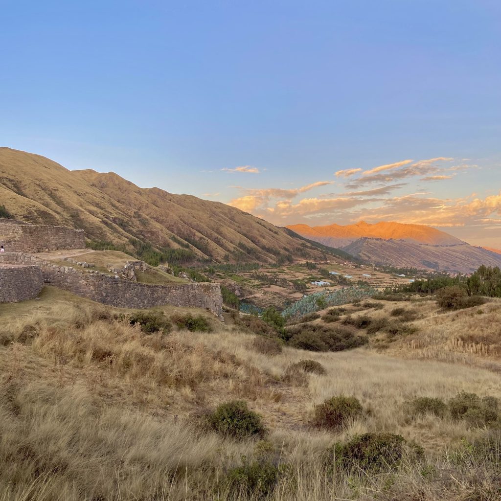 O próximo destino foi Tambomachay, conhecido como o “Templo da Água”. Este local é famoso por suas fontes e canais de água, que demonstram o avançado conhecimento dos incas em hidráulica. Há quem acredite que Tambomachay era um lugar sagrado de adoração à água, elemento vital para as civilizações andinas. Seguimos para Puka Pukara, que significa “fortaleza vermelha” em quechua. Esse local, com suas muralhas de pedras avermelhadas, era provavelmente um posto militar que controlava a entrada e saída de Cusco. Apesar de não ter o mesmo tamanho imponente de Sacsayhuaman, Puka Pukara oferece uma visão fascinante da arquitetura militar inca e de como eles estrategicamente protegiam sua capital.