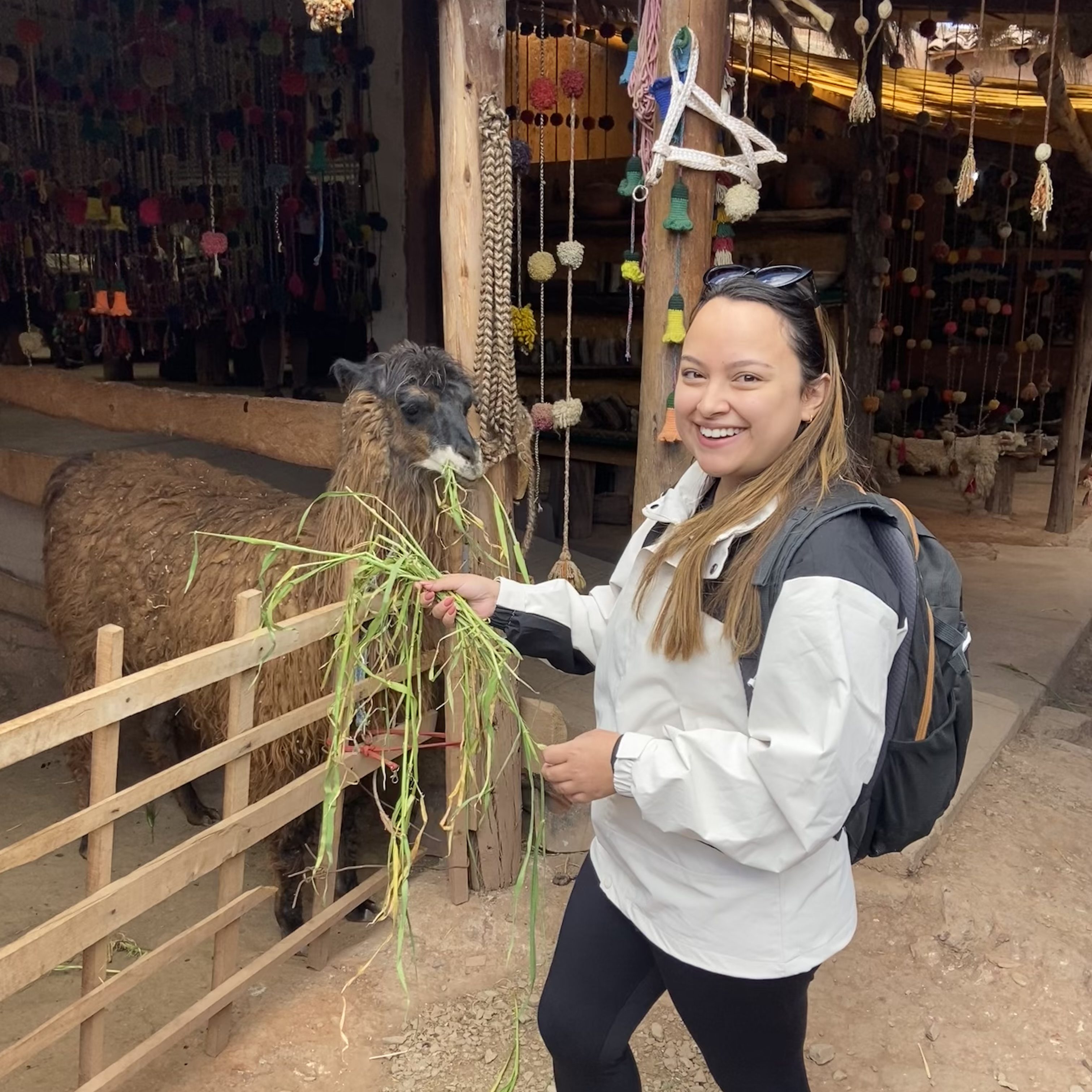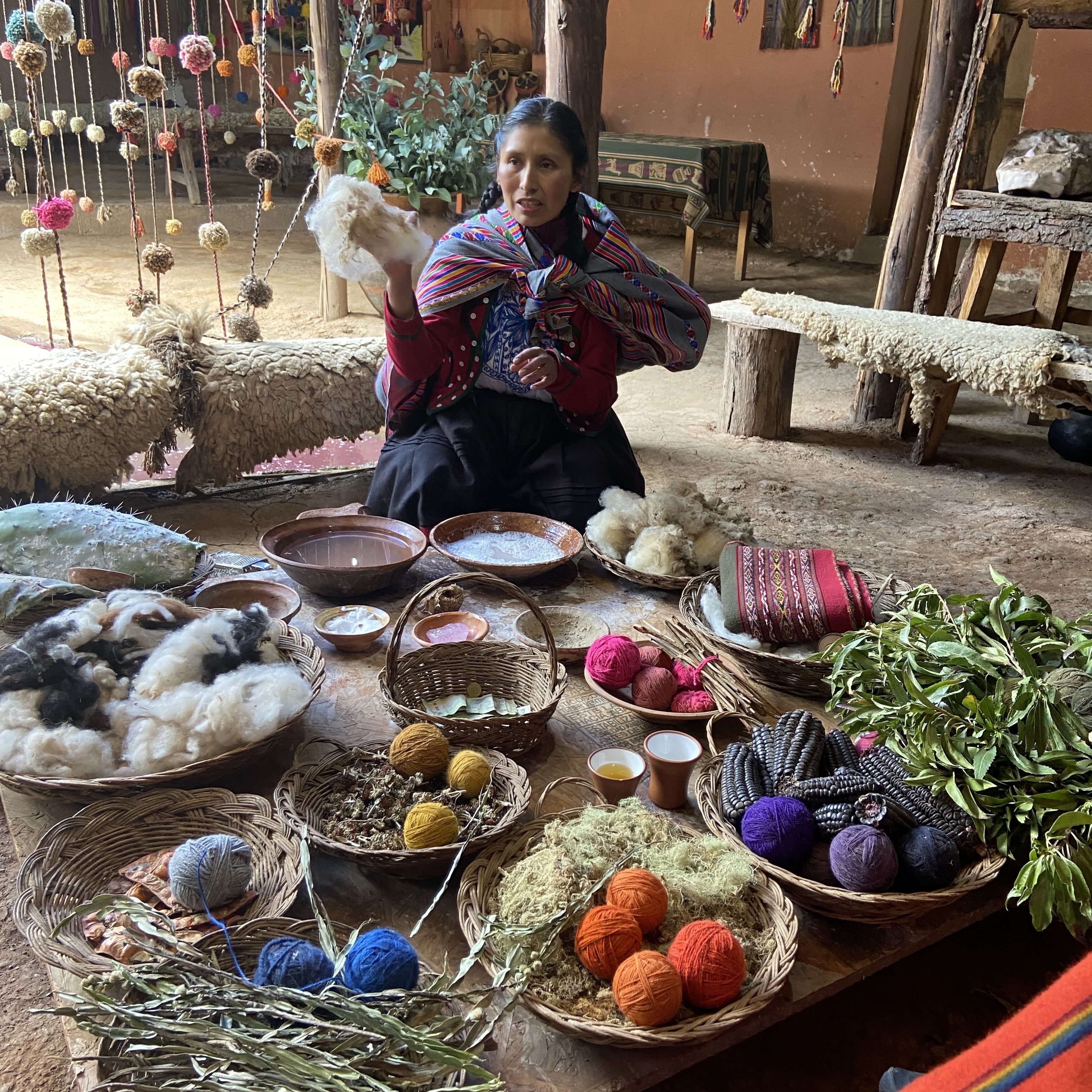 O quarto dia da minha viagem foi cheio de aventuras e descobertas fascinantes, com um day tour que me levou aos arredores de Cusco. O guia me buscou bem cedinho no hotel, e logo partimos para o Chinchero, uma pequena aldeia andina que guarda muitas tradições. A primeira parada foi em uma fábrica de tecido feitos de lã de Alpaca, onde as tecelãs, que ainda mantêm viva a tradição de tecer tecidos coloridos usando técnicas ancestrais, e ensinam sobre o processo, é realmente fascinante. Curiosidade: Chinchero é conhecida por ser o lugar onde o último imperador inca, Túpac Amaru II, foi capturado pelos espanhóis antes de ser executado, marcando o fim da resistência inca.