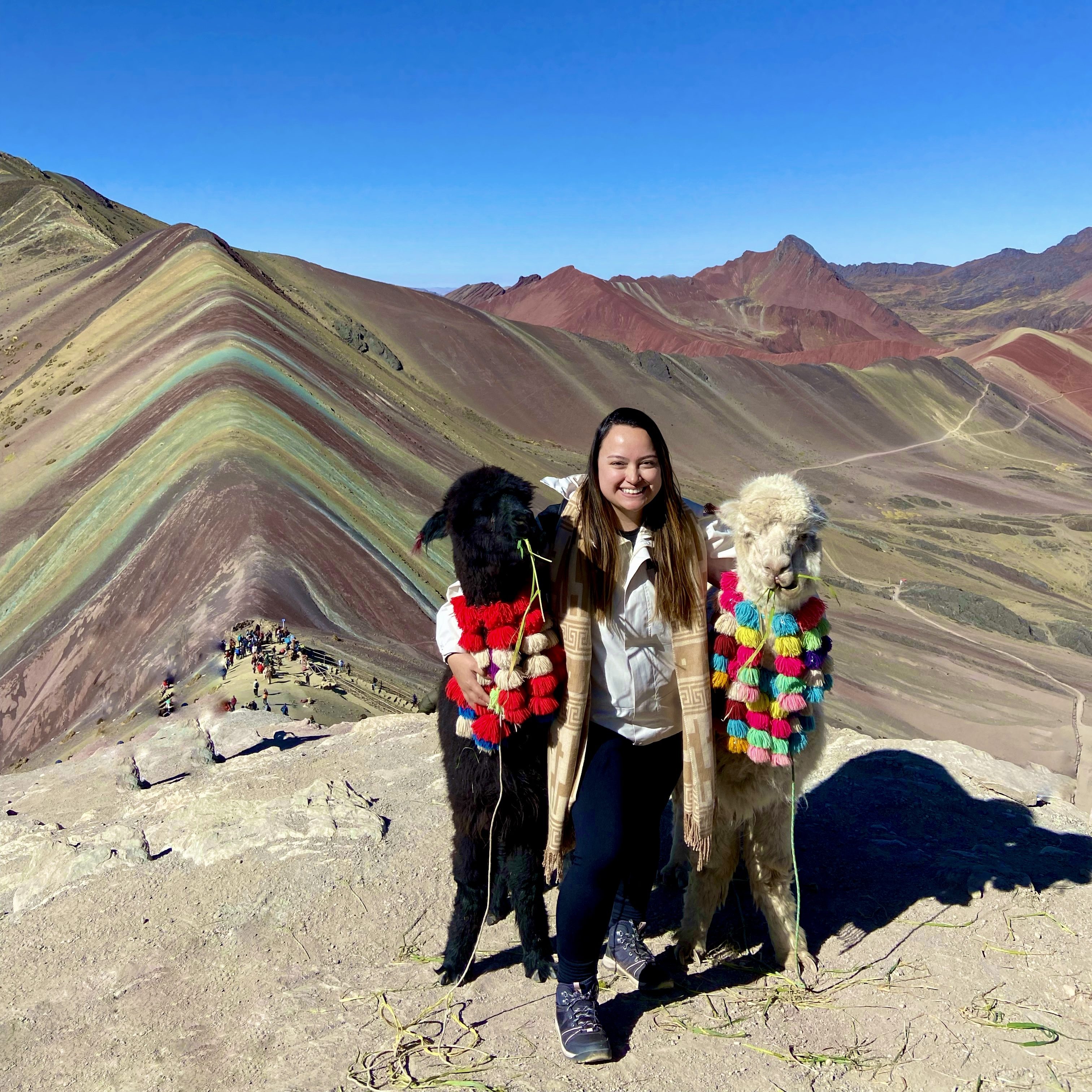 O sétimo dia da minha viagem foi um dia de pura energia e beleza! Comecei o dia bem cedo, pois estava prestes a conhecer uma das paisagens naturais mais deslumbrantes do Peru: a Montanha Colorida, também conhecida como Vinicunca ou Rainbow Mountain. O passeio começou com uma viagem de van até o início da trilha, que me levou por algumas das paisagens mais impressionantes dos Andes. O caminho até a base da montanha foi de tirar o fôlego, com vista para pastores de alpacas, planícies vastas e uma imensidão de montanhas ao redor. As vans andam muitos próximas ao penhasco, dá muito medo, mas a beleza ao redor compensa.