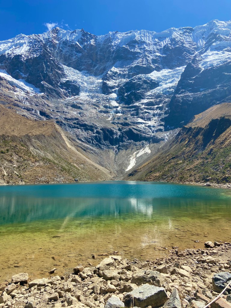 O oitavo dia da minha viagem foi marcado por uma das experiências mais impressionantes em termos de natureza e cultura. Comecei o dia com um Day Tour para a Laguna Humantay, uma das lagunas mais lindas da região de Cusco. A viagem começou bem cedo, com um trajeto de van até o ponto de início da trilha, onde a vista das montanhas nevadas já me deixou sem palavras. A Laguna Humantay fica a cerca de 4.200 metros acima do nível do mar, e sua cor verde-turquesa vibrante é um dos maiores atrativos para quem visita a região. A caminhada até a lagoa é muito difícil devido à altitude, mas a recompensa ao chegar à lagoa é inestimável. A água cristalina reflete as montanhas ao redor, criando uma paisagem que parecia saída de um cartão postal. Também dá para subir de cavalo, mas a colina é bem íngreme e os cavalos só sobem uma vez ao dia – ou seja, se quer subir de cavalo chegue cedo, porque pode acabar. A flora e fauna local, além de um clima que variava entre o frio das altitudes mais altas e o calor intenso do sol andino são fascinantes. Ao chegar na lagoa, eu fiquei por ali por um tempo, aproveitando a paisagem e a tranquilidade do lugar. Não há como não se sentir pequeno diante da grandiosidade da natureza ao redor. A laguna está situada ao pé do Nevado Humantay, uma montanha sagrada para os incas, e o local é considerado espiritual, com as águas da lagoa sendo vistas como um símbolo de purificação.