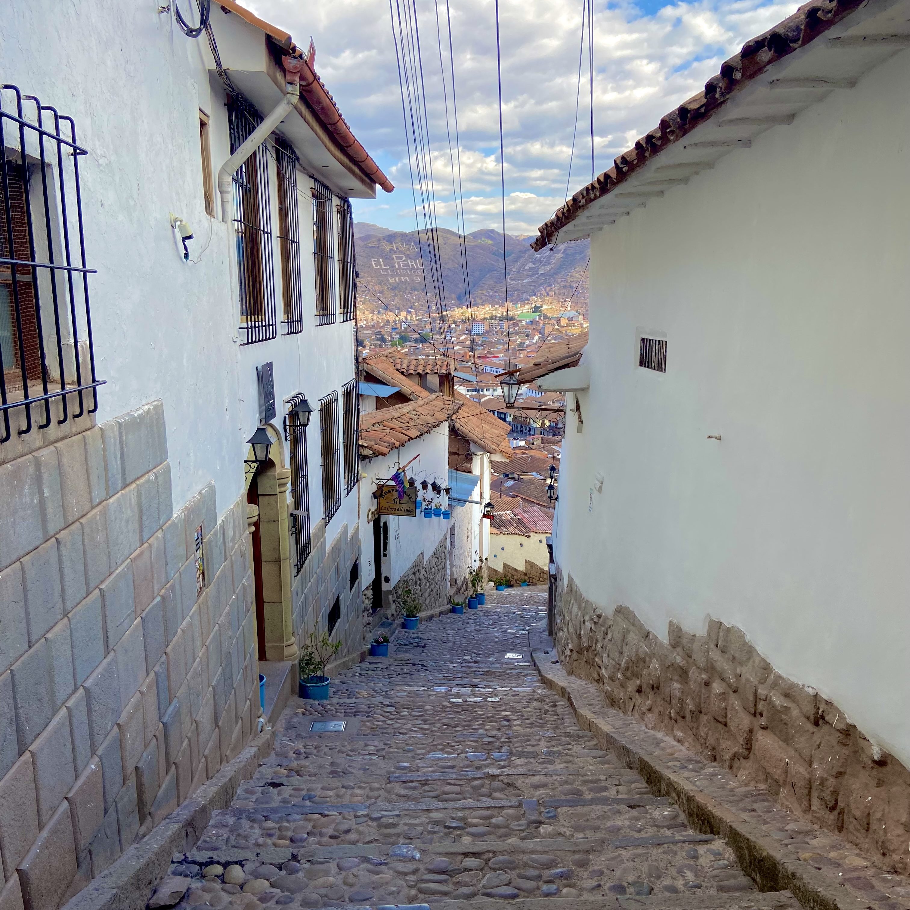 Depois, decidi subir até o Mirador de San Cristobal, que oferece uma vista panorâmica espetacular de Cusco. O mirador fica no topo de uma colina e é um dos melhores pontos para tirar fotos da cidade e das montanhas ao redor. A vista é de tirar o fôlego, e é possível ver toda a cidade de Cusco se estendendo até as montanhas. Fiquei alguns minutos ali, absorvendo a beleza de Cusco e refletindo sobre essa viagem incrível.