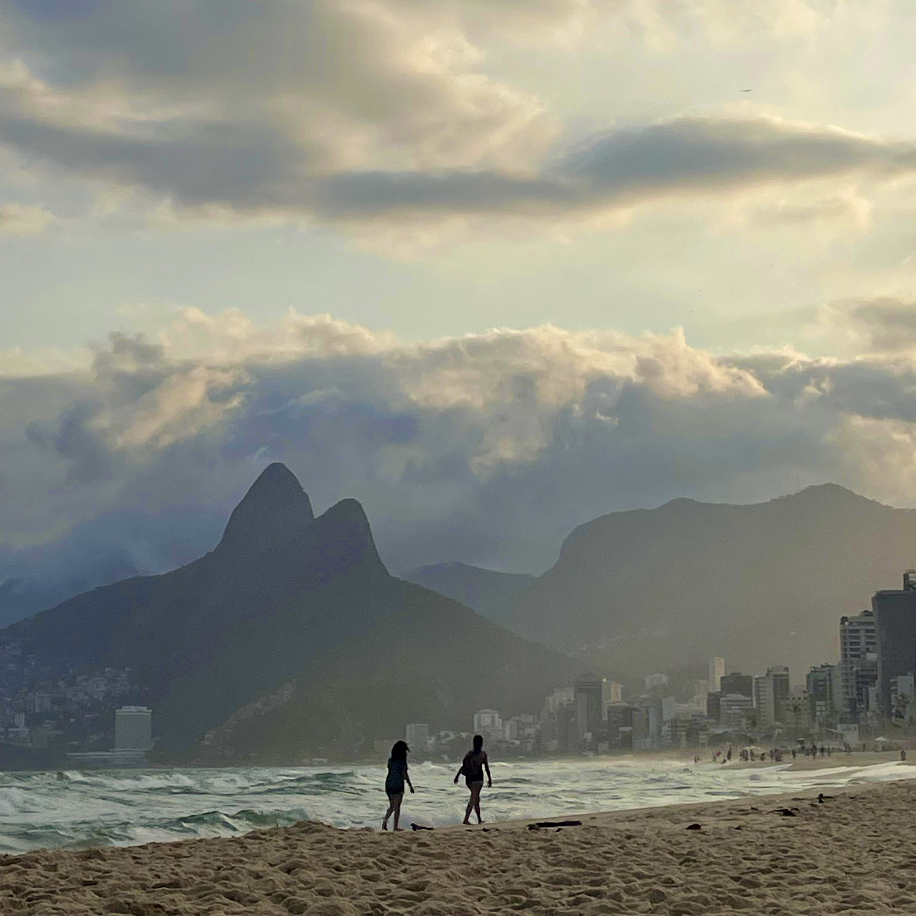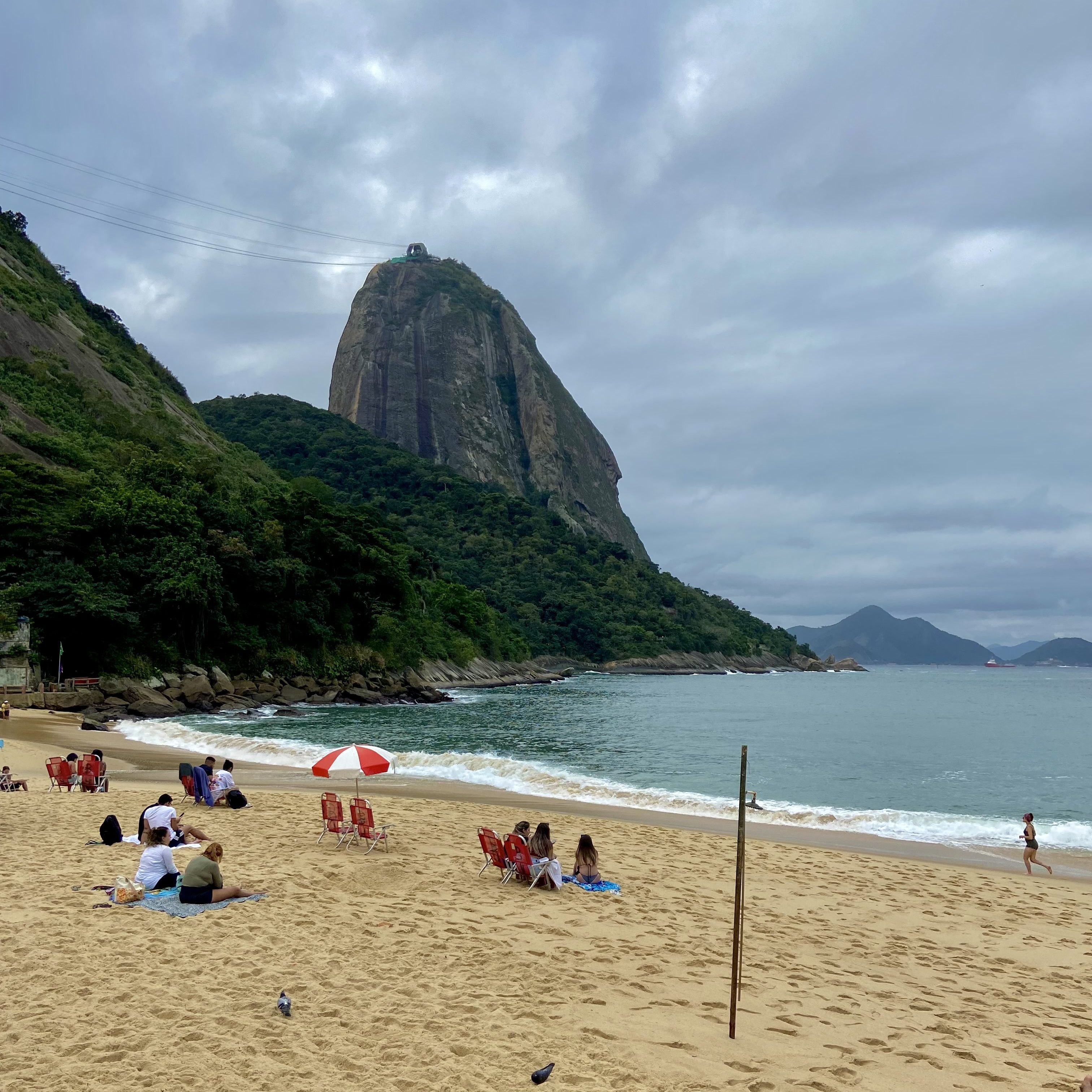 E para aproveitar o dia ensolarado e a vibe carioca ficamos o resto do dia pela Praia do Leblon, que é uma praia para todos os gostos: famílias, amigos, gente fazendo caminhada, jogando futevôlei e aquela vibe de bairro residencial à beira-mar. Fica logo depois de Ipanema e tem uma vista privilegiada do Morro Dois Irmãos, especialmente bonita no fim da tarde. Se quiser um visual ainda mais especial, você pode subir até o Mirante do Leblon. Mas nós optamos por ficar pela praia, o mar estava mais agitado, mas deu pra curtir o sol.