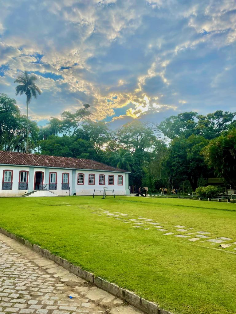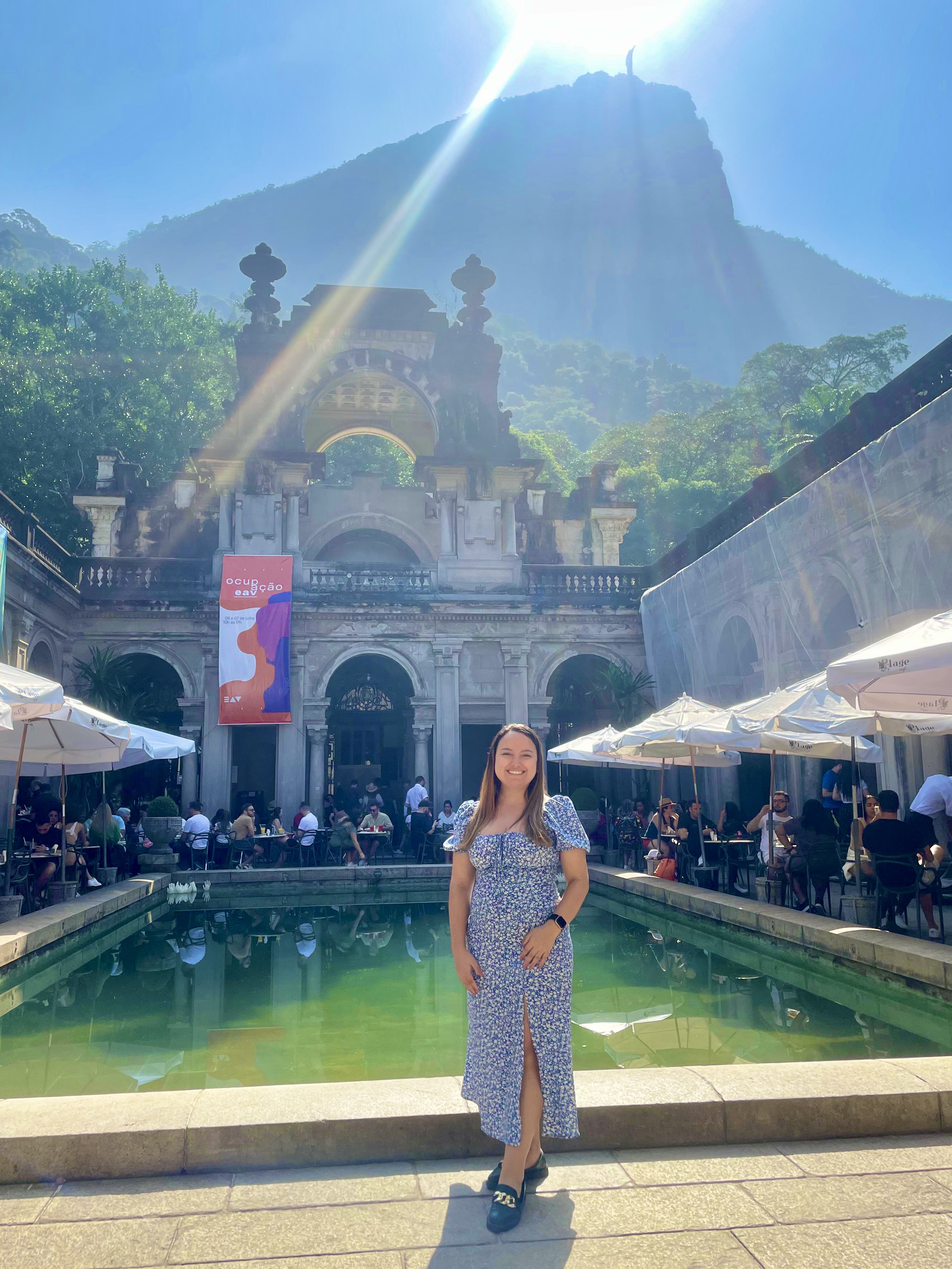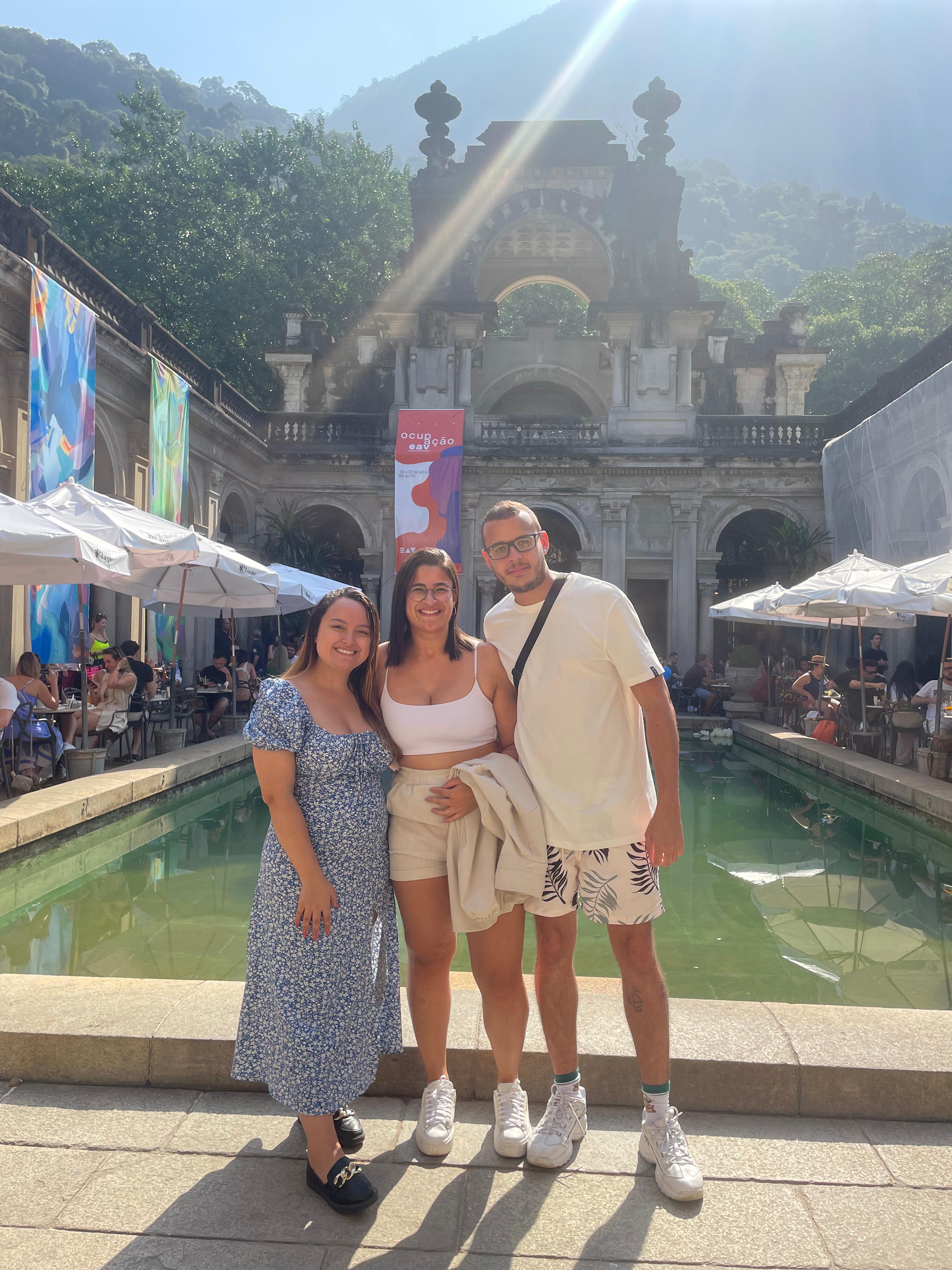 Na sequência, fomos andando até o Parque Lage, que fica pertinho dali (uns 15 minutinhos a pé). O parque é gratuito e tem uma vibe bem artística e descontraída. Logo na entrada, você já dá de cara com o palacete histórico, que abriga a Escola de Artes Visuais (EAV) e um café bem charmoso no pátio interno — sim, aquele cenário famoso com a piscina e o Cristo Redentor ao fundo, que virou um clássico do Instagram. Mas o Parque Lage é mais do que isso: tem trilhas na mata, um aquário escondido em pedra, áreas de piquenique e exposições de arte contemporânea. Mesmo que você só queira descansar um pouco e tomar um café num lugar bonito, já vale muito a pena.