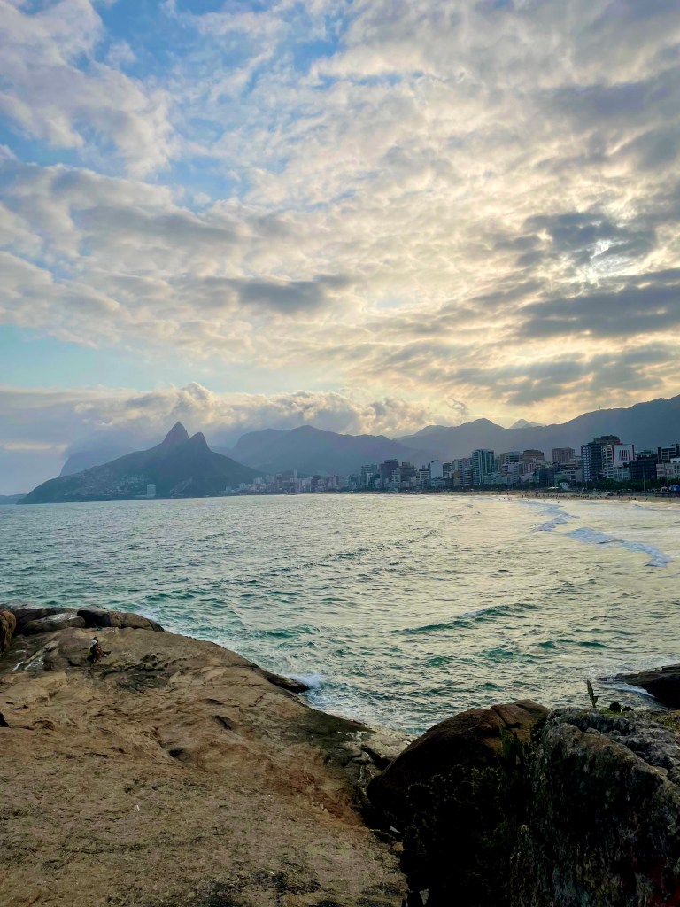 Pra fechar o dia com chave de ouro, fomos caminhando até a Pedra do Arpoador, aquele ponto clássico entre Copacabana e Ipanema, e é um excelente ponto para assistir o pôr do sol. Dá pra sentar nas pedras, tomar uma água de coco e só contemplar. Ali do lado tem a Praia do Arpoador, ótima pra quem curte surf ou quer fugir um pouco do agito de Copacabana regado a caipirinhas de procedência duvidosa. Fechamos o dia aproveitando o visual do Posto 9 da Praia de Ipanema, que fica ali do lado. A vibe ali é leve, democrática e animada, perfeita pra quem gosta de gente, conversa e um pôr do sol inesquecível.