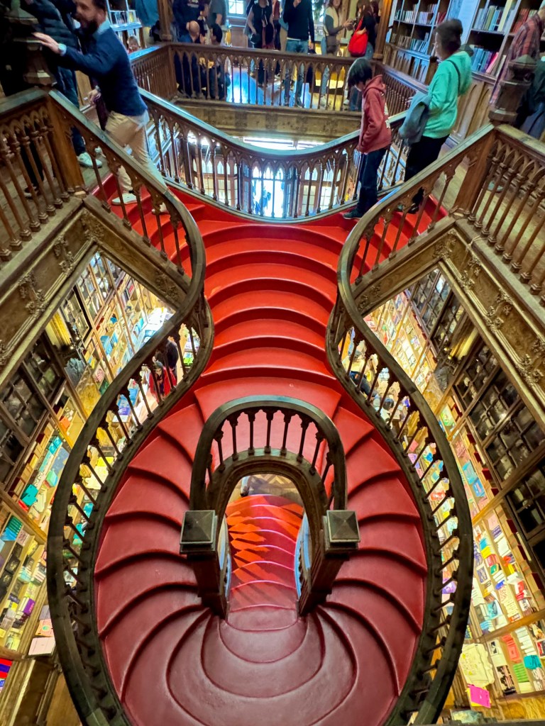 Cheguei em Porto no comecinho da tarde, fui direto pro meu Airbnb deixar as minhas malas e, sem perder tempo, já comecei a explorar a cidade. O centro histórico é compacto, então dá pra ver muita coisa em pouco tempo – e foi exatamente o que eu fiz. Minha primeira parada foi a famosa Livraria Lello, considerada uma das livrarias mais bonitas do mundo, dizem que inspirou J.K. Rowling enquanto ela morava em Porto e escrevia Harry Potter (embora ela já tenha desmentido isso depois, a lenda pegou!). A escadaria vermelha é o grande destaque, mas o teto rendado e os vitrais também são lindíssimos. A entrada custa a partir de 10€ (valor de 2025), mas vira crédito se você comprar algum livro. Vale a pena comprar antecipadamente no site oficial, pois as filas são grandes.