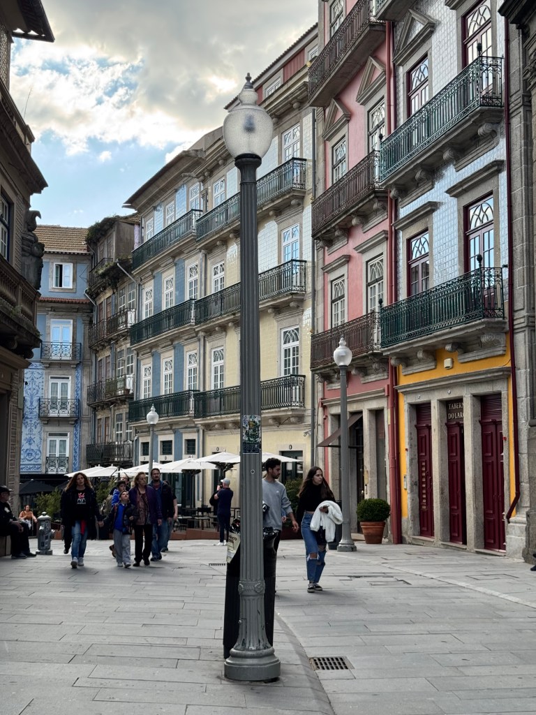 Ali perto fica a Capela das Almas, que é daquelas que você para sem querer no meio da rua e pensa: “preciso fotografar isso”. São mais de 15 mil azulejos portugueses contando a história de Santo Francisco de Assis e Santa Catarina. Fica numa esquina super movimentada, e mesmo assim chama a atenção. Depois segui rumo ao Café Majestic é puro glamour nostálgico. Inaugurado em 1921, ele foi ponto de encontro da elite literária e boêmia da cidade. O ambiente, todo em estilo art nouveau, é uma viagem no tempo. Depois fui até a Igreja de Santo Ildefonso, outro tesouro de azulejos: São mais de 11 mil peças compondo cenas bíblicas, numa fachada azul e branca. Ela fica numa praça bem movimentada, com feirinhas ao redor, e o contraste do antigo com o moderno é muito interessante ali.