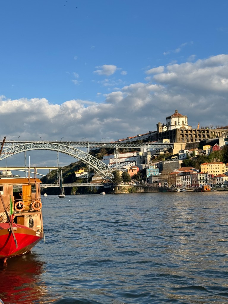 Dali eu fui em direção à Gaia, atravessei a famosa Ponte Dom Luís I, projetada por um discípulo de Eiffel – sim, aquele da torre em Paris. Ela tem dois níveis, e o superior é usado pelo metrô e pedestres. Atravessei à tarde e foi uma das vistas mais bonitas da viagem: o Douro brilhando, os barcos rabelos ancorados e a cidade dourada pela luz do sol. É um dos pontos mais procurados para se ver o pôr do sol. Cheguei do outro lado da ponte no Jardim do Morro, outro mirante perfeito pra ver o pôr do sol. Muitas pessoas visitam esse espaço para fazer piqueniques, há músicos tocando violão e um clima gostoso que te faz querer parar o tempo. Dali, a vista do centro histórico de Porto é surreal (as melhores vistas do Porto ficam em Gaia, lado oposto do rio).
