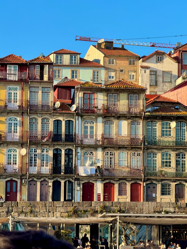 Depois fui passear pela Rua das Flores, uma das mais charmosas da cidade. Cheia de lojinhas, cafés, restaurantes e músicos tocando ao vivo, ela é perfeita pra caminhar sem pressa. É uma daquelas ruas que parecem ter sido feitas pra admirar, cada esquina rende uma foto bonita. Desci até o Cais da Ribeira, que é provavelmente o lugar mais fotogênico de Porto. As casinhas coloridas à beira do Douro, os barcos no rio, o reflexo da ponte… tudo parece pintura. De lá, fiz o famoso Cruzeiro das 6 Pontes, um passeio de barco que dura cerca de 50 minutos e passa pelas pontes que ligam Porto a Vila Nova de Gaia. Custa em média de 15€ a 20€, e é uma forma tranquila (e linda!) de ver a cidade por outro ângulo. Vá no pôr do sol, vale a pena! você consegue comprar lá na Ribeira, mas também dá pra comprar antecipadamente no Get Your Guide.