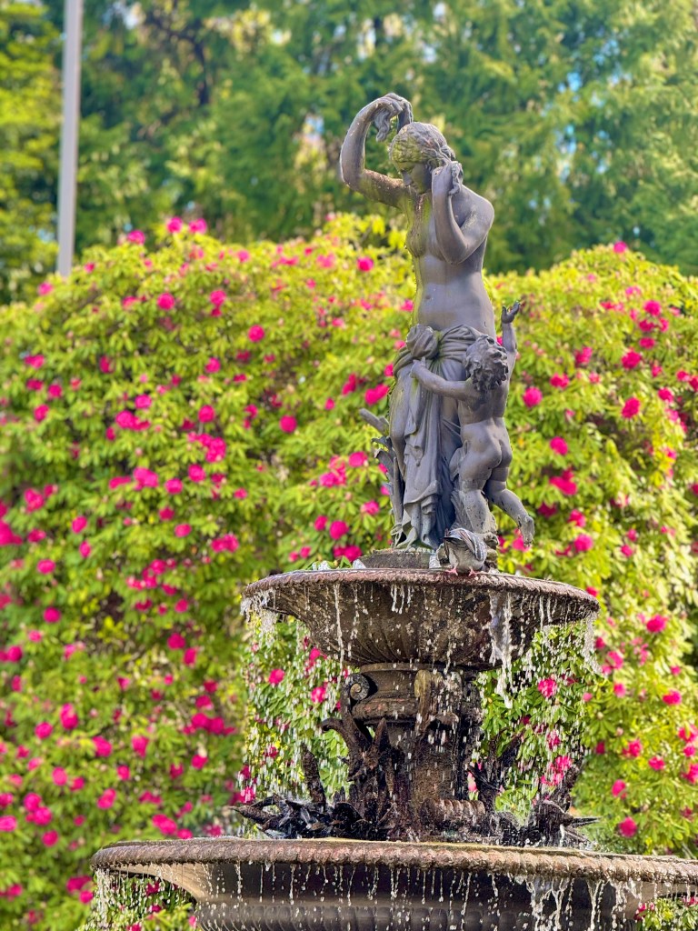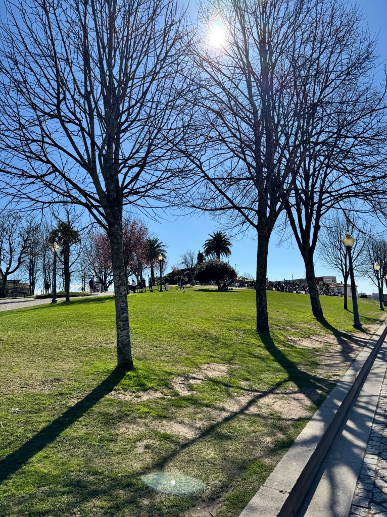 De lá, segui para um dos meus cantinhos favoritos do Porto: os Jardins do Palácio de Cristal. Não se engane pelo nome — o antigo palácio de vidro que existia ali já foi demolido e deu lugar a um pavilhão multiuso, mas o que brilha mesmo são os jardins ao redor, com diferentes estilos, fontes, lagos, pavões caminhando livremente (!) e uma das vistas mais lindas do Rio Douro. É o tipo de lugar que te convida a sentar num banco, respirar fundo e se despedir da cidade com um pouco de poesia. Aliás, se você curte fotografia ou quer uma selfie com o visual perfeito, esse é o lugar.