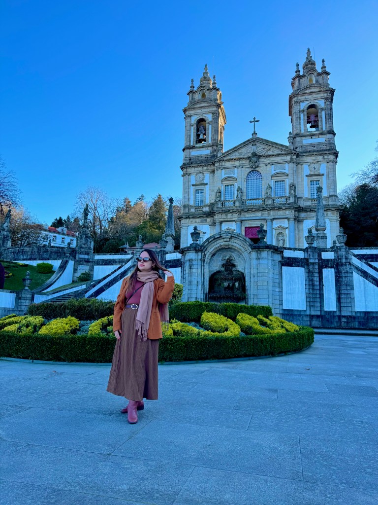 No meu terceiro dia em Portugal, decidi conhecer duas cidades históricas que carregam muito da história portuguesa: Braga e Guimarães. Contratei esse tour com antecedência pelo Get Your Guide e recomendo demais! O guia era excelente de recheou o dia com histórias e curiosidades que fazem a gente enxergar mais do que só construções bonitas. Foi um dia intenso, mas sem correria, com tempo livre e paradas certeiras. A primeira parada do dia foi de tirar o fôlego — literalmente, se você decidir subir os 577 degraus da escadaria monumental. O Santuário do Bom Jesus do Monte, além de um dos principais símbolos religiosos do país, é uma obra-prima do barroco. A escadaria forma um zigue-zague super simétrico, e é repleta de fontes que representam os cinco sentidos: visão, audição, tato, paladar e olfato. Se não quiser subir a pé, dá pra usar o funicular movido a água, em funcionamento desde 1882 — sim, movido à água! Ele é o mais antigo do mundo ainda ativo com esse sistema. Lá de cima, a vista de Braga é de suspirar. E mesmo pra quem não é religioso, o ambiente convida a uma certa contemplação — o tipo de lugar que te faz caminhar mais devagar e respirar.