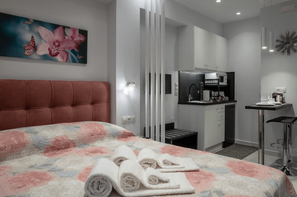 Eu fiquei hospedada em um Airbnb super bem localizado, numa rua paralela à Rua Ermou — a principal rua de comércio da cidade. Ele ficava exatamente entre a Praça Syntagma e Monastiraki, ou seja: localização perfeita pra explorar tudo a pé. A região é cheia de restaurantes, lojas, mercados e fica perto tanto do metrô quanto dos principais pontos turísticos, fiz quase tudo a pé. O apartamento é compacto, tem 20 m², e fica no 5º andar (com elevador), totalmente renovado e pensado para até duas pessoas. Apesar do espaço ser compacto, o apartamento é moderno, estiloso e funcional, com ar-condicionado (essencial nos dias quentes de Atenas). A janela oferece uma vista para a Acrópole, que pode ser vista até da cama, o que adiciona um charme na hospedagem. A região é muito viva: tem muitas opções de cafés, restaurantes, lojas e ainda fácil acesso ao metrô (linhas azul e verde estão nas estações vizinhas), o que torna super prático sair para conhecer os arredores ou voltar com compras. Eu paguei R$ 660 por diária, incluindo impostos e taxas, excelente custo benefício, e o valor pode variar de acordo com a temporada. Gostei muito da experiência e, sem dúvidas, voltaria a me hospedar nesse local em uma próxima oportunidade.