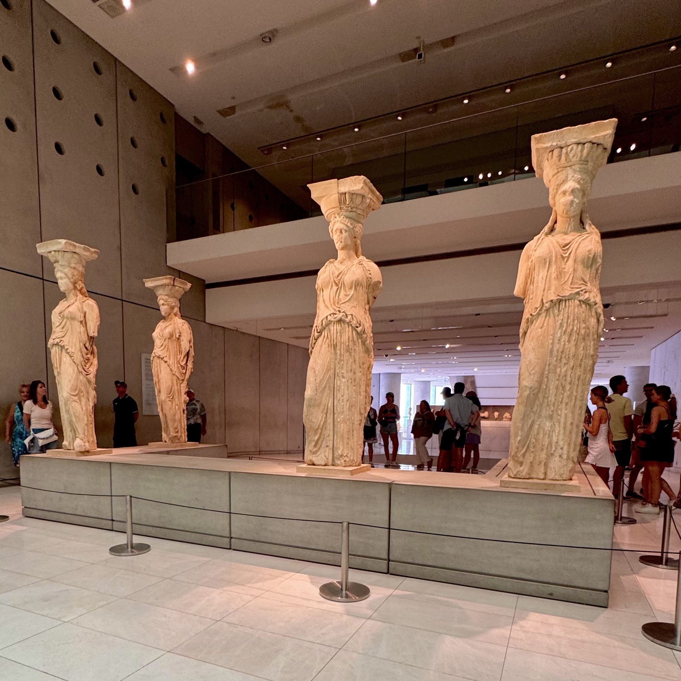Logo na saída da Acrópole, fui direto para o Museu da Acrópole, que é moderno, super bem montado e fica ali pertinho. Ele abriga as esculturas originais da Acrópole (as que sobraram), maquetes, as Cariátides originais, relíquias e até partes da antiga cidade que podem ser vistas através do chão de vidro do museu. A entrada custa €20 e pode ser adquirida no site oficial, honestamente, vale cada centavo. É ali que a gente entende como o passado, a mitologia e a arqueologia se entrelaçam em Atenas.