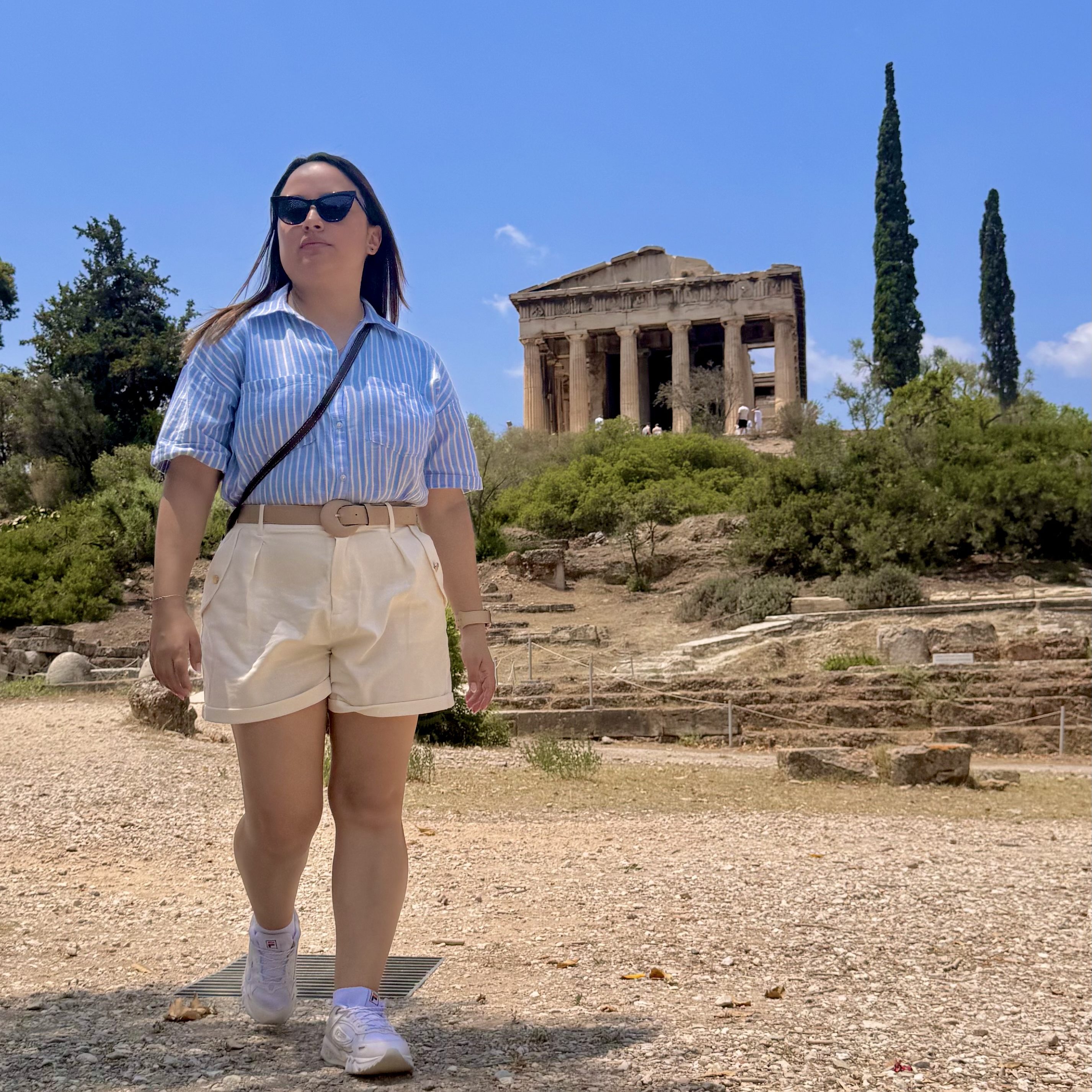 Depois do museu, segui para a Ágora Antiga, o antigo centro comercial, político e social de Atenas. Caminhar por lá é quase como voltar no tempo: dá pra ver a estrutura das antigas lojas, templos e até uma prisão onde Sócrates teria sido mantido. No fundo do sítio arqueológico está o Templo de Hefesto, que é um dos templos dóricos mais bem preservados da Grécia, cercado por um jardim cheio de flores e com uma vista linda da cidade. A entrada na Ágora Antiga custa €20 e pode ser adquirida no site oficial.