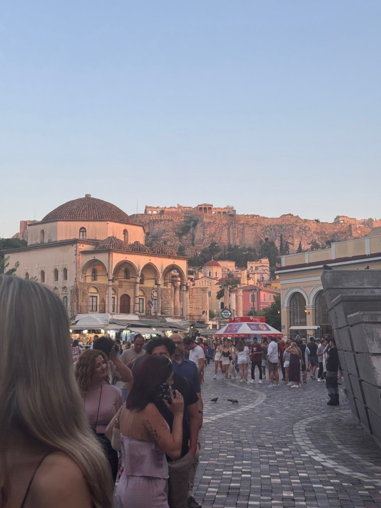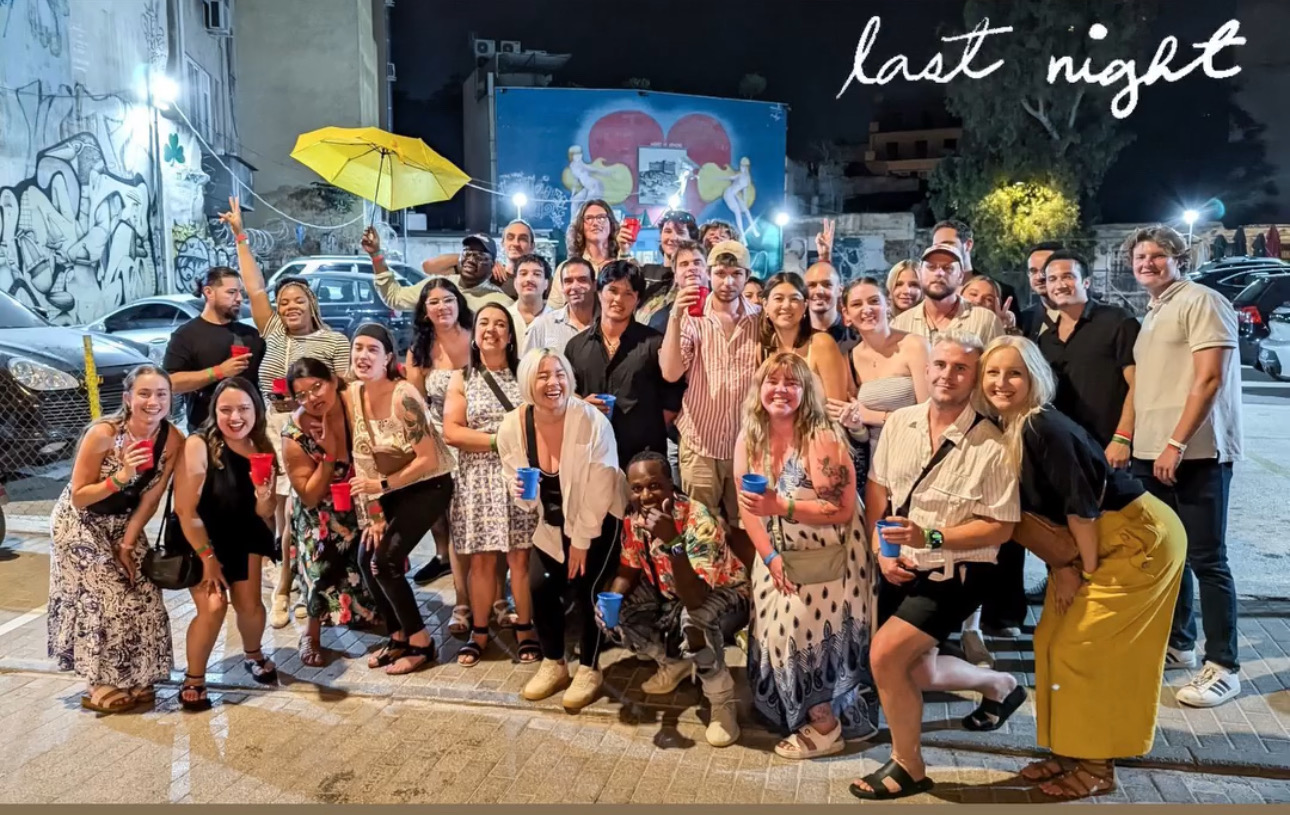 Finalizei a tarde em Plaka, o bairro mais charmoso e turístico de Atenas. As lojinhas de lembrancinhas se misturam a cafés, tavernas e restaurantes com mesas ao ar livre. Aproveitei para jantar por ali mesmo e descansar um pouco antes da noite começar. E que noite! Como eu estava sozinha, encontrei um jeito de aproveitar a vida noturna de um jeito seguro: em um Pub Crawl super divertido, que encontrei no GetYourGuide, conduzido pela Athens Party Pub Crawl (Instagram: @athenspartypubcrawl). O grupo era uma mistura ótima de gente do mundo todo. O pacote inclui um shot de boas-vindas em cada bar e, com um extra, você pode adicionar uma hora de bebidas ilimitadas, eu paguei €32,99 que incluia 1 hora de cerveja e vinhos ilimitados, mas tem outras opções com outros preços. Visitamos quatro bares diferentes nas regiões de Psiri, sendo o último um clube muito divertido. Foi uma forma leve, divertida e social de terminar um dia tão denso de história. Recomendo demais pra quem gosta de conhecer pessoas e curtir uma noite mais animada.