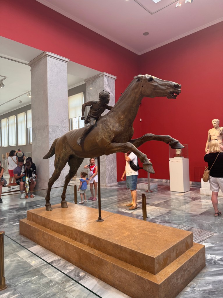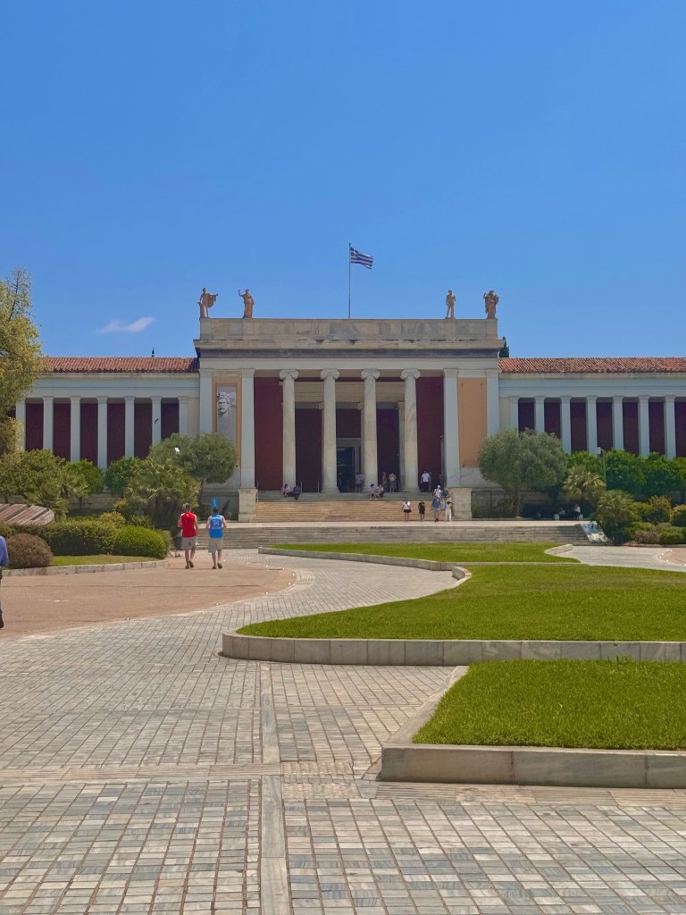 Para uma imersão cultural maior, visitei o Museu Arqueológico Nacional de Atenas, que é simplesmente um dos maiores e mais importantes da Grécia e da Europa. O acervo é gigante, com peças que vão desde a Pré-História até o período romano, incluindo artefatos únicos como as máscaras douradas dos reis da Macedônia e estátuas de deuses gregos. Um dos destaques para mim foi a coleção de esculturas cicládicas, que parecem quase modernas. O ingresso custa €12 (inteira) e pode ser adquirido no site oficial, e vale reservar ao menos 2 a 3 horas para aproveitar bem.