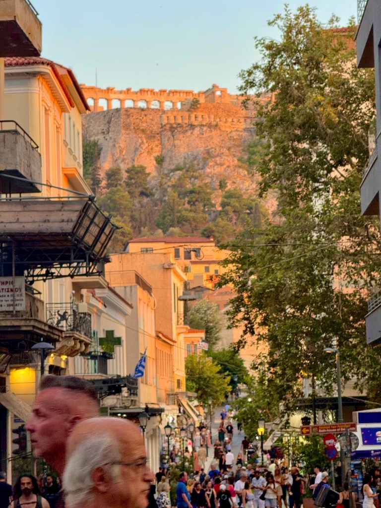 Espero que esse roteiro te inspire a viver Atenas com o olhar curioso e o coração aberto. Porque Atenas é mais do que ruínas milenares, ela pulsa entre o passado e o presente, se revela no cheiro dos restaurantes, no som das conversas nas tavernas, na luz dourada que cai sobre o mármore ao entardecer. É uma cidade que carrega o peso da história e, ao mesmo tempo, dança com leveza no improviso do cotidiano. Cada ruazinha conta uma lenda, cada colina oferece uma vista que faz a gente respirar mais fundo. Atenas é daquelas cidades que provocam mais do que explicam, a gente sente nos pés cansados, no calor seco da pele, nos olhos que brilham diante de tanta beleza imperfeita e real. É impossível passar por ela sem sair diferente.
