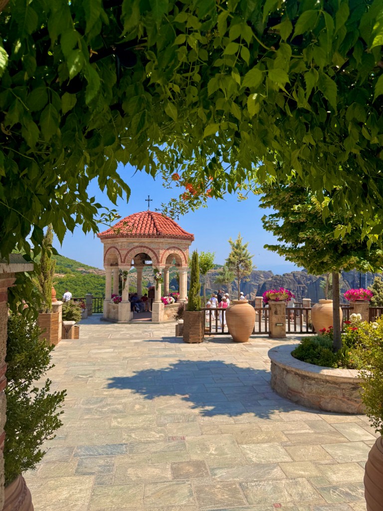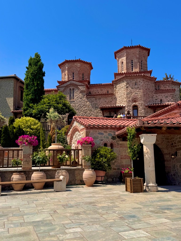 Nossa guia, Caterine, compartilhou uma história inspiradora sobre como conheceu esse monge. No começo da vida adulta, ela foi diagnosticada com câncer e, sentindo-se perdida, escreveu uma carta pedindo conselhos a ele. Apesar de raramente receber visitantes, o monge aceitou uma reunião com ela. O conselho dele foi simples, mas profundo: “Você tem três coisas que podem te ajudar a passar por isso e não está prestando atenção: tem saúde suficiente para fazer suas tarefas diárias; tem uma rede de apoio, como família e amigos; e tem paixões e interesses na vida. Continue com seu tratamento e faça o que você ama — as coisas vão se resolver.” Caterine confessou que, no início, ficou cética e decidiu seguir o tratamento mais para provar que o conselho estava errado. Mas a verdade é que ele estava certo — ela se curou, continuou seus estudos em história e arqueologia, e hoje está livre do câncer há 10 anos. Essa história emocionou o grupo e deu um tom de esperança e fé à visita, mostrando que Meteora não é só um lugar de beleza física, mas também um espaço de força espiritual.